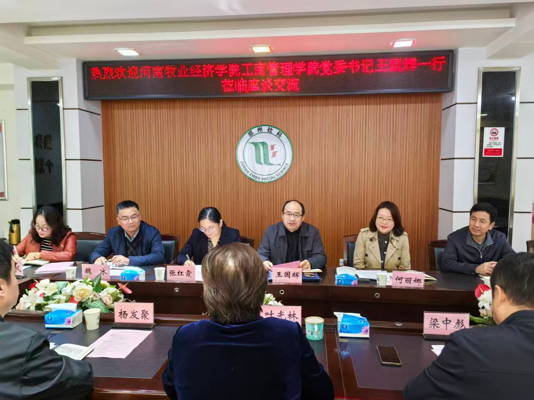 叶光林主席介绍了郑州市社科联的基本情况以及主要工作职责。她指出,社会科学研究应紧密对接地方经济发展需求,强化学科交叉与产学研协同,服务郑州国家中心城市建设;双方可在城市蓝皮书编撰、专项课题研究、成果转化推广等方面深化合作,构建常态化、制度化的校地协同机制。与会人员还围绕科研平台共建、咨政建言、智库专报、资源共享等具体问题进行了讨论交流。