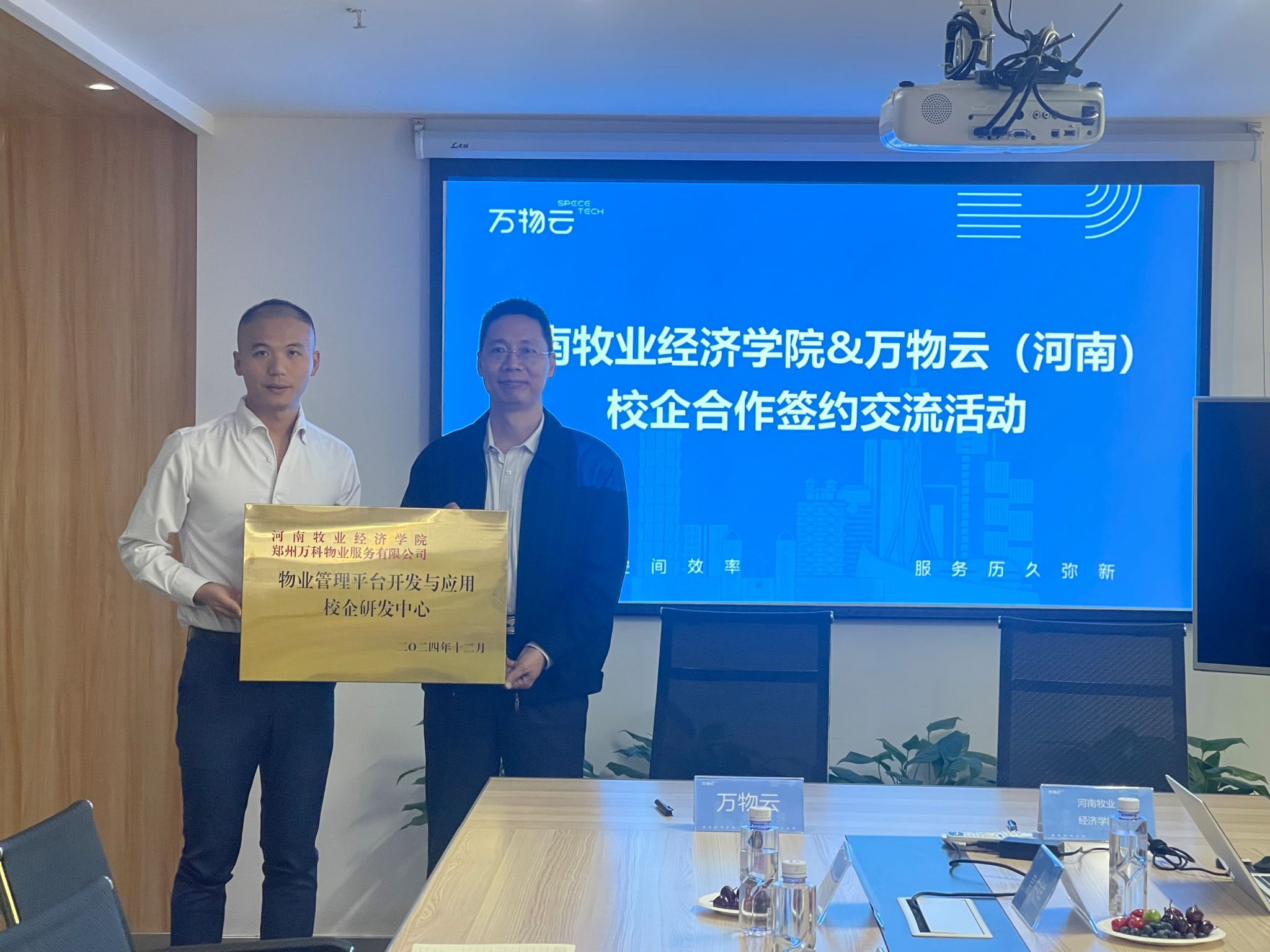 范森副院长在座谈中指出,此次合作是落实学校“牧工商一体化”特色办学理念的重要实践,通过校企研发中心这一载体,实现“教师进企业、工程师进校园”的双向赋能。万科物业河南区负责人陈诚分享了行业发展趋势,强调当前行业对数智化管理、新兴业态物业管理人才的迫切需求。程锡麟老师从专业建设、横向课题等角度提出了合作方向。