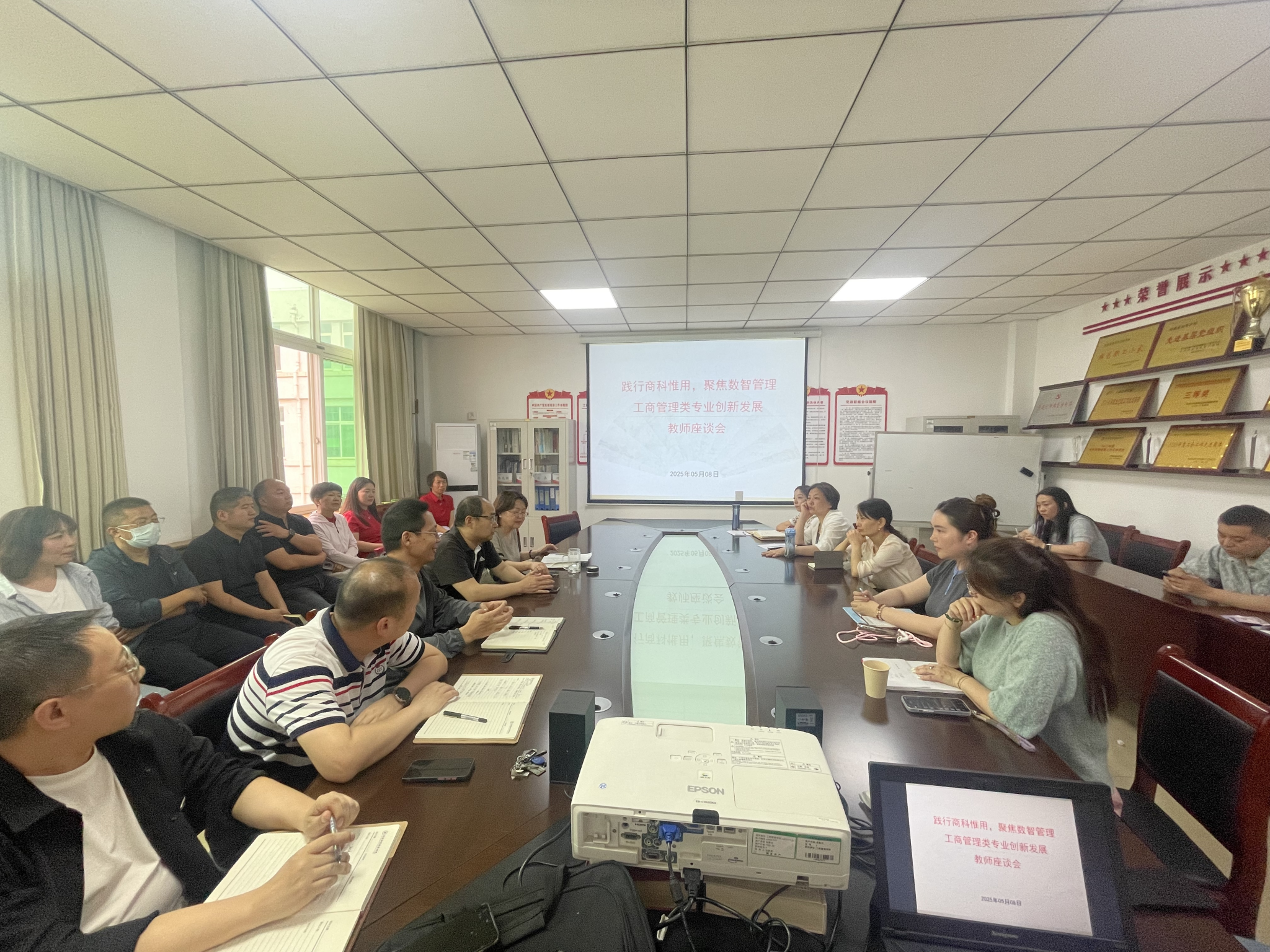 为深化工商管理类专业内涵建设,探索数字经济时代人才培养新模式,WilliamHill中文于5月8日下午在英才校区教学办公楼412会议室召开“工商管理类专业创新发展教师座谈会”。学院领导班子、工商管理教研室、人力资源管理教研室、智慧零售教研室、国际商务教研室全体教师共聚一堂,围绕“商科惟用,数智管理”主题,深入探讨专业建设路径、人才培养模式创新及数智化转型方向,全面总结现有建设成果优势,剖析学科发展痛点,共绘未来蓝图。会议由副院长范森主持。