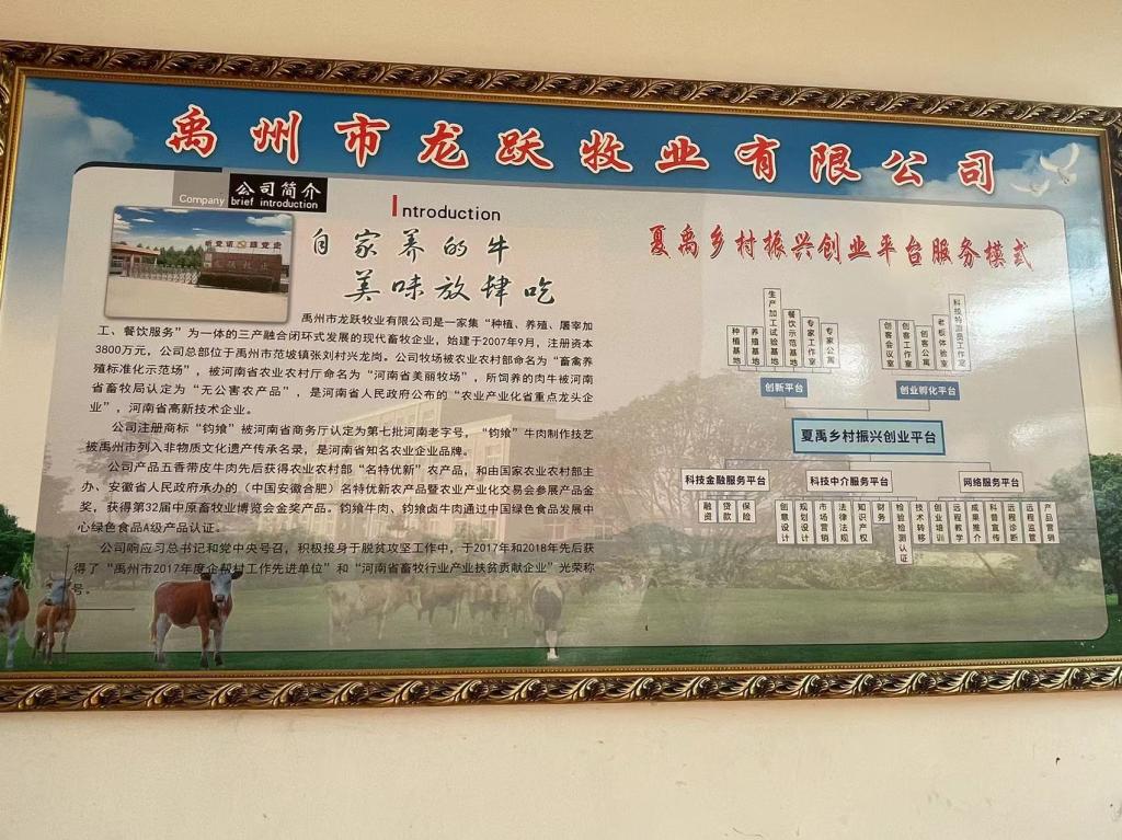 在禹州市范坡镇张刘村的龙跃牧业公司调研期间,大家走进养殖现场,查看牛的养殖状况。在“校联企”合作交流会上上,我院一行认真听取了龙跃牧业蒋占龙董事长和其他领导的需求诉求,详细询问了解了企业黄牛系列产品的优势、经营管理模式和未来发展规划等情况,询问了企业发展过程中遇到的困难和问题,大家就黄牛系列产品数字营销和产品深度差异化竞争、一体化营销的纵深发展提出不同的看法,为企业后续升级、重塑、提质发展提供了一定的参考建议。