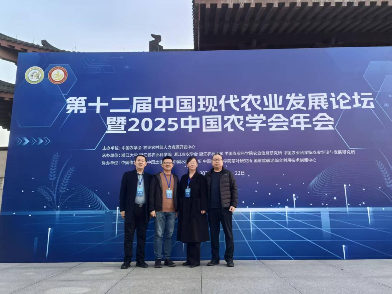2025年11月20日至22日,第十二届中国现代农业发展论坛暨2025中国农学会年会在浙江大学紫金港校区举行。本届论坛以“新质生产力赋能农业强国建设”为主题,汇聚了农业农村部领导、两院院士、高校科研机构及企业代表近2000人,共同探讨农业科技前沿与创新发展路径。williamhill中国科技处处长潘春梅、WilliamHill中文陈科博士和闫超华博士、经济与贸易学院胡海洋博士一行受邀参会。