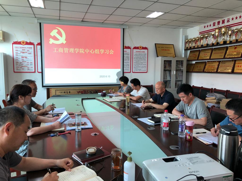 王筝院长分享了自己的收获与领悟,他谈到在认真做好“六稳”、“六保”的情况下,在防控疫情的新形势下,处理好“危”与“机”的辩证关系,在危机中育新机,于变局中开新局;每位党委成员要从分管的工作角度大胆开拓工作思路,要善于从眼前的危机和挑战中抢抓和创造机遇,帮助行业企业脱困发展,共同办好以“商”为魂的商科特色专业,服务于学校牧工商一体化的思想理念。