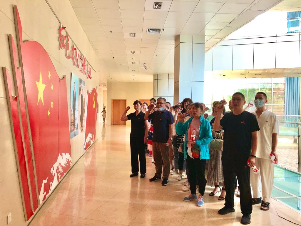 参观结束后,全体党员移步到重温入党誓词大厅,佩戴党员党徽,高举右拳,面对党旗庄严宣誓,一字一句铿锵有力,充分表达了恪守党员承诺、争当模范党员的决心。