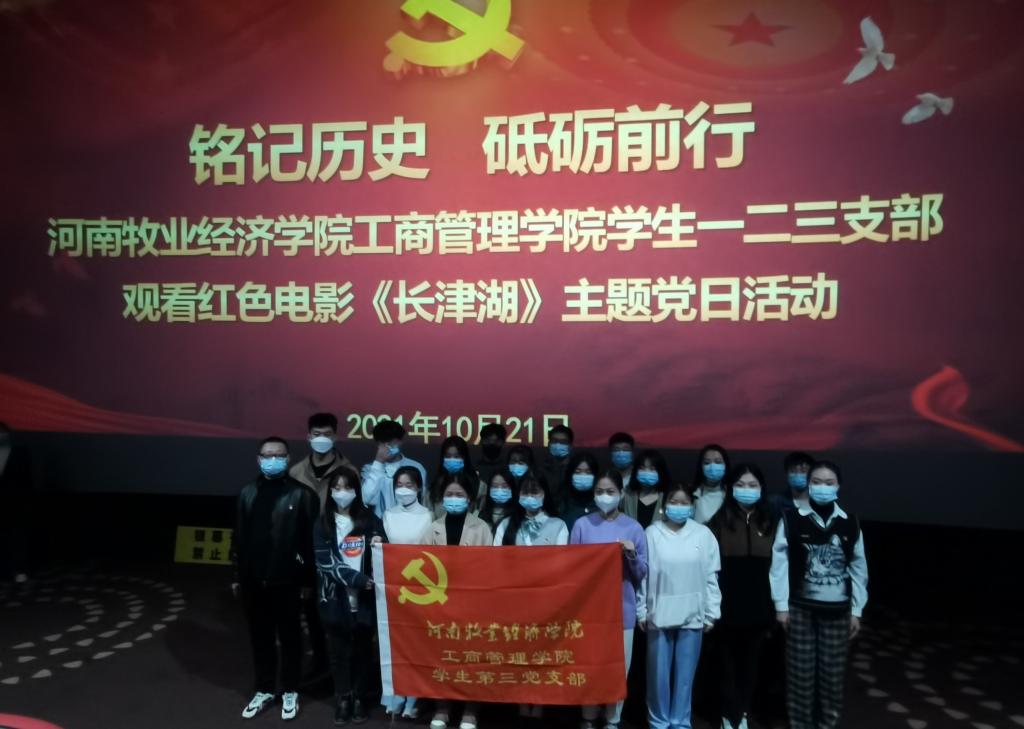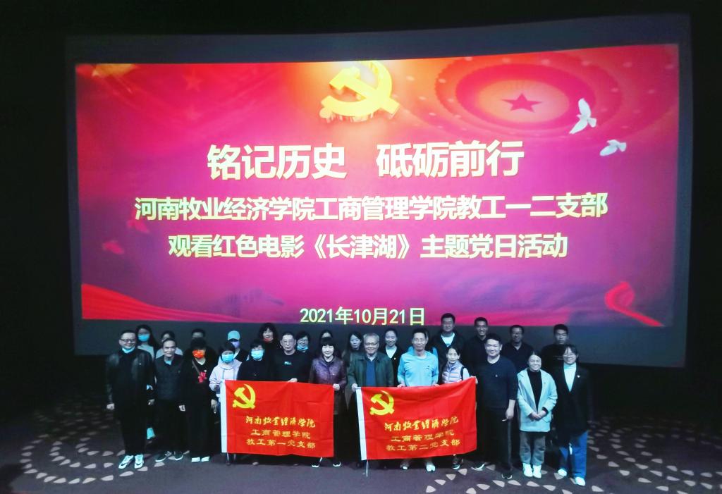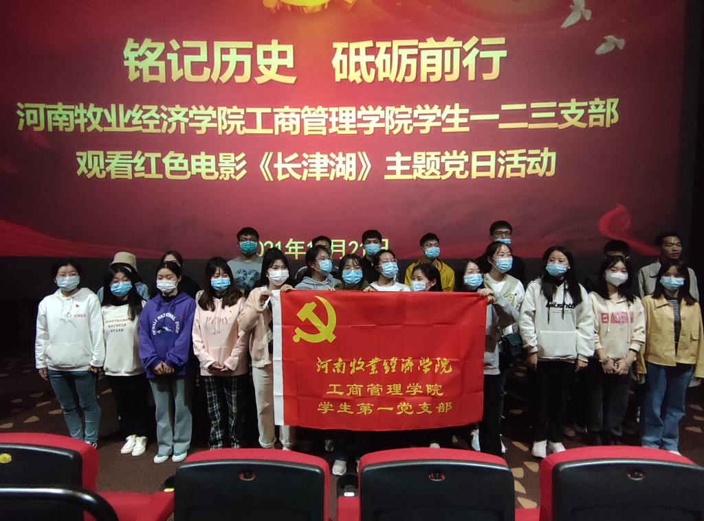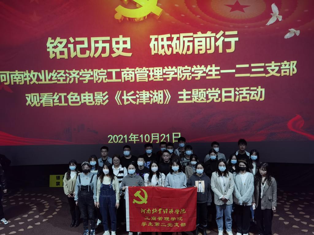 在中华人民共和国72周年华诞之际,为深入开展党史学习教育,进一步激发广大党员干部的爱国热情,弘扬爱国主义精神,为推动基层党组织党史学习教育常态化开展,2021年10月21日WilliamHill中文党委王桂朵书记、王筝院长、姬爱国副院长、范森副院长等领导带队,组织教工第一、二支部和学生一、二、三支部党员同志步行前往惠济区万达影城开展红色观影——《长津湖》主题党日活动。通过重温革命历史,进而传承红色基因,坚定理想信念。我院120余名党员参加了本次活动。