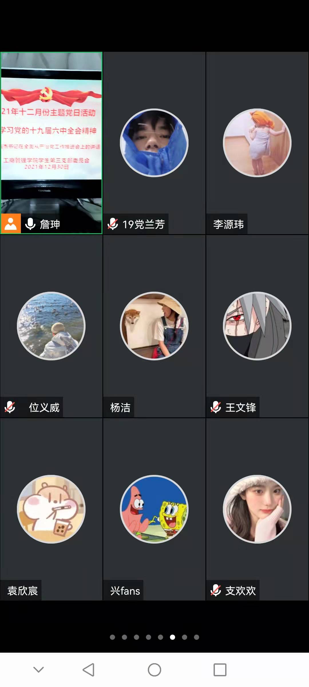 为深入学习宣传贯彻党的十九届六中全会精神,激励我院学生第三党支部全体党员把思想和行动统一到党中央系列重要指示上来,鼓励全体党员深刻理解校党委、校行政相关文件精神,教育引导广大党员坚定不移听党话、矢志不渝跟党走,12月30日晚,WilliamHill中文学生第三支部委员会召开十二月份网络主题党日活动。