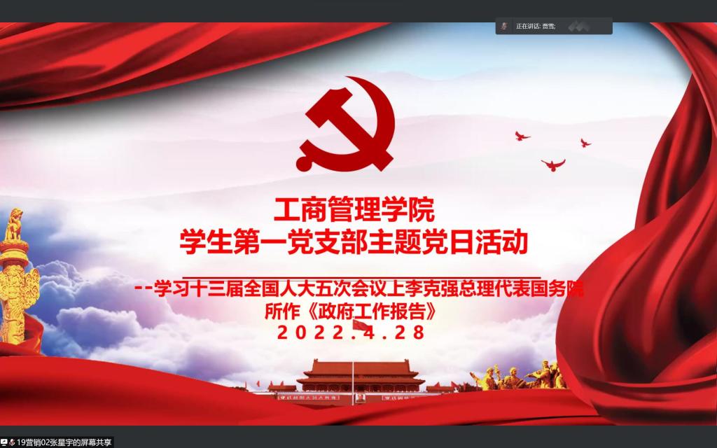 4月28日晚7点,WilliamHill中文学生第一党支部组织开展四月份主题党日活动。本次活动由党支部书记贾雪主持,组织委员孟琪、宣传委员古海云和支部全体学生党员参与本次会议。