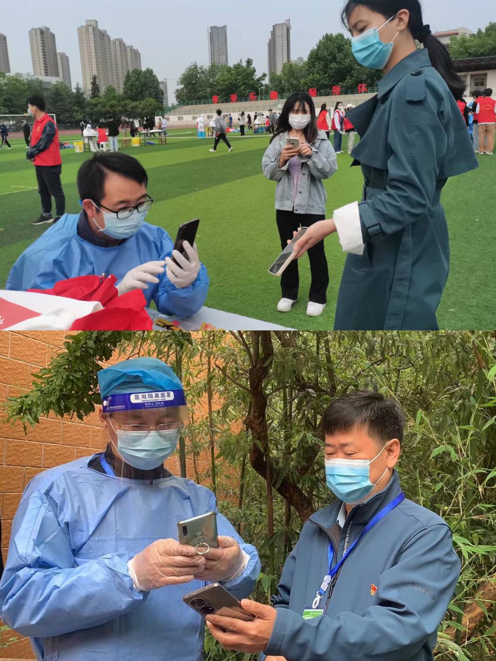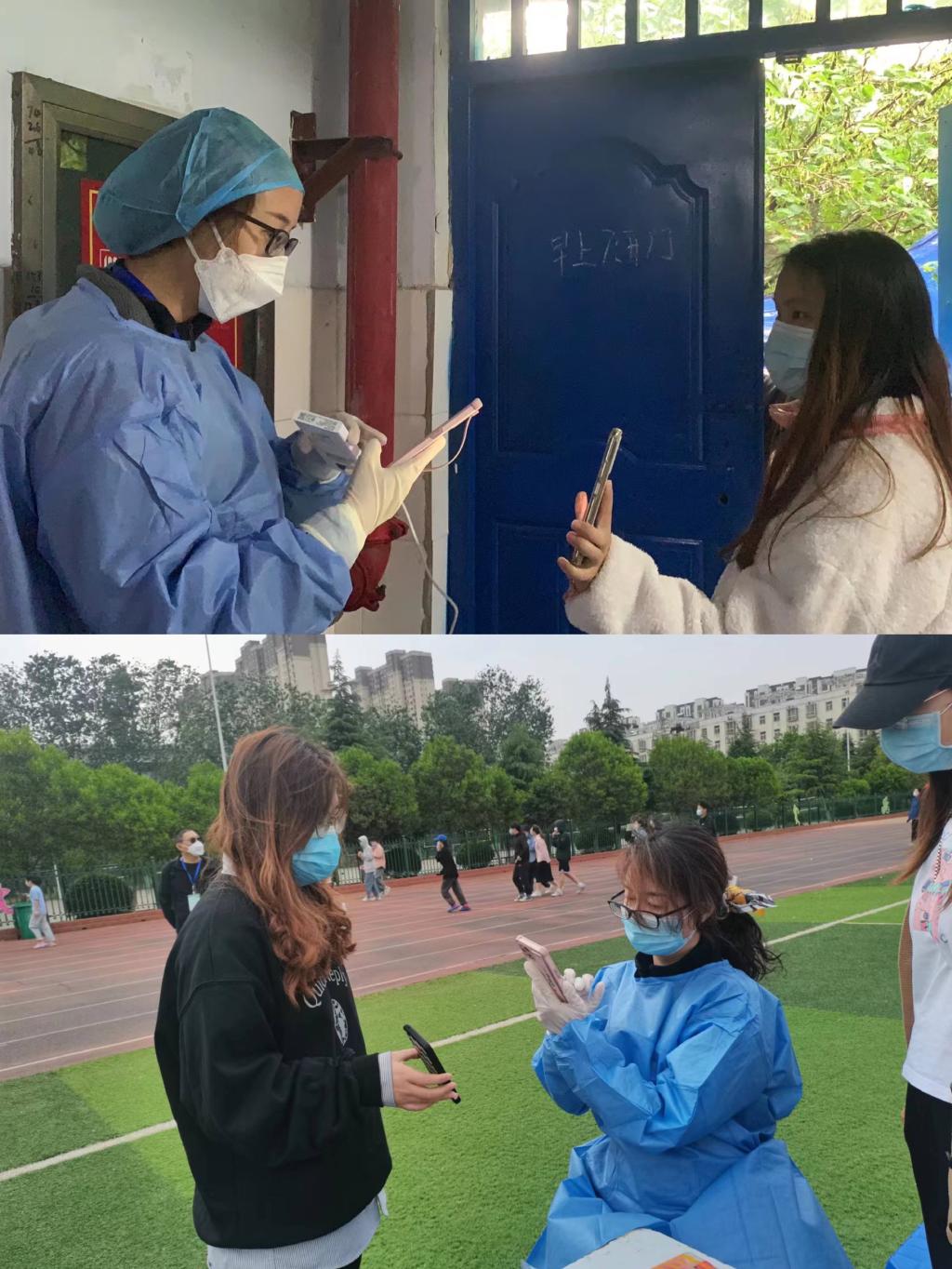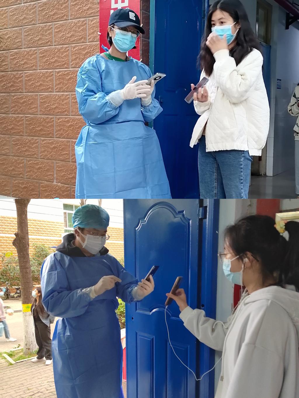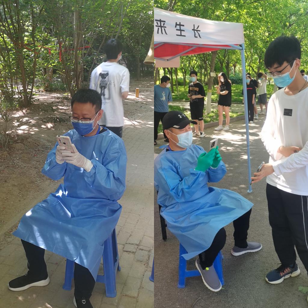 5月5日开始,张国锋、李珍、刘哲、王璇、张静、龙江华、兰晶、毋黎明等,数十名住在生活园区的教师党员志愿者先后深入校区内参与学生核酸检测扫码服务。每天一早,就有两名教师党员志愿者由生活园区通往校区的小门进入校区开始核酸检测扫码工作,经过简单的培训并做好自身防护后,他们熟练地拿起手机为排队的学生扫码,认真完成核酸检测前期的录入核对工作,并时刻督促学生们加强自我防护,规范佩戴口罩,保持一定的安全距离。