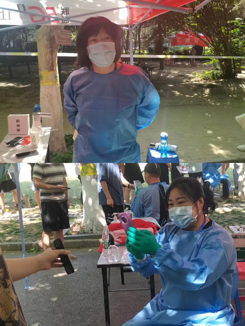 9号这天,已过立夏时节,郑州的气温却突变,最低温度骤降到8℃。一早,张静老师独自一人来到校区进行党员志愿服务,这一站便是一天!一天下来,腿也肿了,腰也直了,胳膊因为长期保持扫码的姿势也像灌了铅似的抬不起来,没说一句累,没叫一声苦。张静老师用行动诠释了责任与担当。