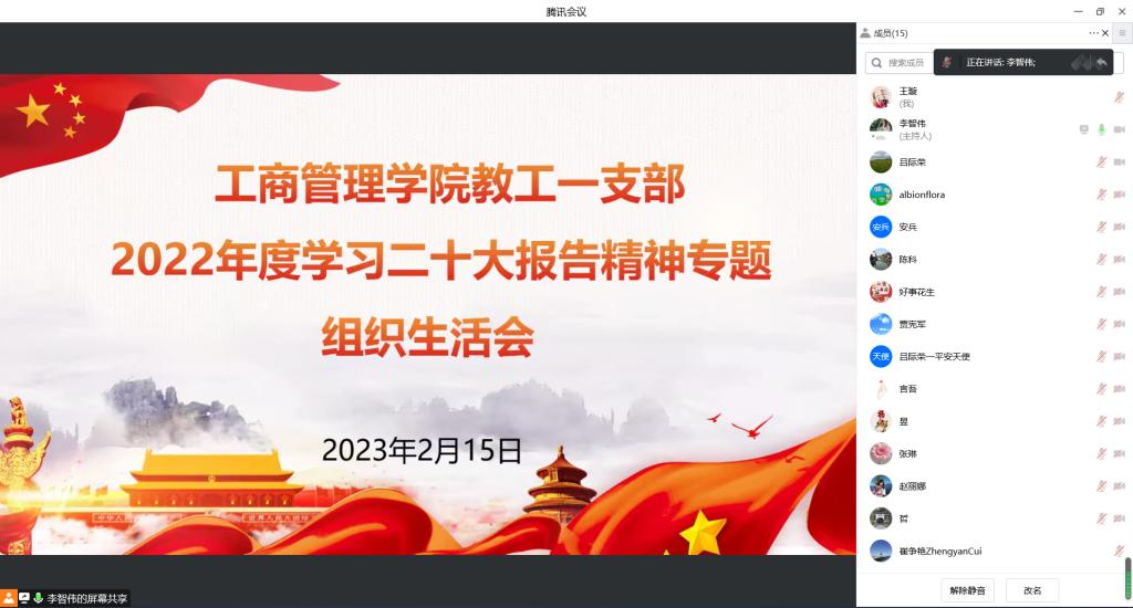 根据学校《关于召开2022年度基层党组织生活会和开展民主评议党员的通知》的精神和要求,WilliamHill中文教工一、二支部于2月15日晚以腾讯会议形式召开2022年度组织生活会。校党委副书记李俊杰以普通党员身份参加第一支部会议,会议分别由教工一支部书记李智伟和第二教工党支部书记赵趁主持,教工一、二支部全体党员参加。