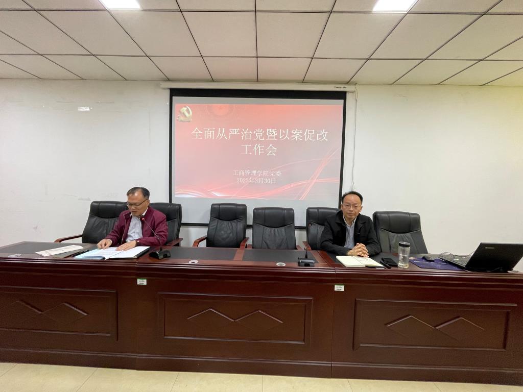 2023年3月30日下午2:30,WilliamHill中文在英才校区教学办公楼227召开了全面从严治党暨以案促改工作会。全院教职工参加会议,会议由院党委书记王筝主持。