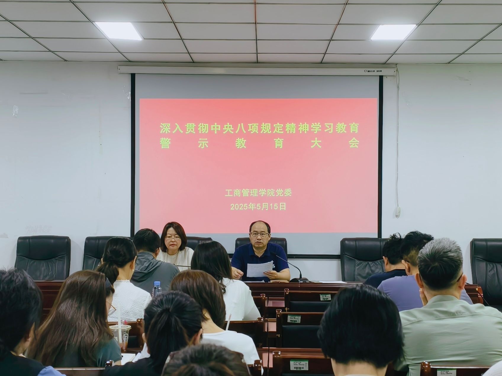 学院党委书记王国辉全面传达了学校5月13日深入贯彻中央八项规定精神学习教育警示教育会的会议精神。深入解读了学校深入贯彻中央八项规定精神学习教育工作专班印发的文件,更结合涉风、涉纪、涉腐的典型案例进行了剖析,将一个个抽象的纪律条款具象化,让党员干部们深刻认识到违反规定的严重后果,真正做到以案说德、以案说纪、以案说法、以案说责,为全体党员干部敲响了廉洁自律的警钟,提醒大家时刻绷紧纪律规矩这根弦,不断增强廉洁自律意识和拒腐防变能力,坚决杜绝各类违规行为的发生。会议中,王国辉书记还带领与会成员深入学习了《习近平在庆祝中华全国总工会成立100周年暨全国劳动模范和先进工作者表彰大会上的讲话》,深刻领会劳动精神的内涵,以及对教育工作者的激励与鞭策;同时,对《“深入贯彻中央八项规定精神学习教育”系列解读第二期:中央八项规定精神主要体现在哪些方面?》进行研读,进一步加深对中央八项规定精神的理解与把握。
