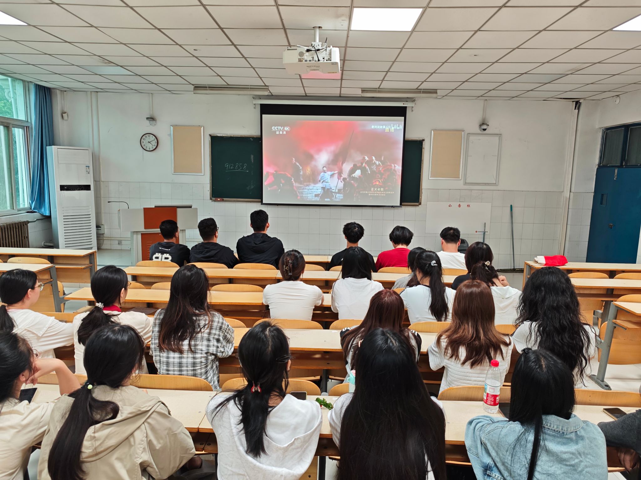 观影过程中,同学们全神贯注,神情肃穆。纪念中国人民抗日战争暨世界反法西斯战争胜利八十周年文艺晚会《正义必胜》高清影像资料,涵盖歌舞、朗诵、情景表演等多种艺术形式,使大家更加深刻地认识到中国人民抗日战争的伟大意义——它是近代以来中国反抗外敌入侵第一次取得完全胜利的民族解放战争,开辟了中华民族伟大复兴的光明前景,也为世界反法西斯战争的胜利作出了不可磨灭的历史贡献。