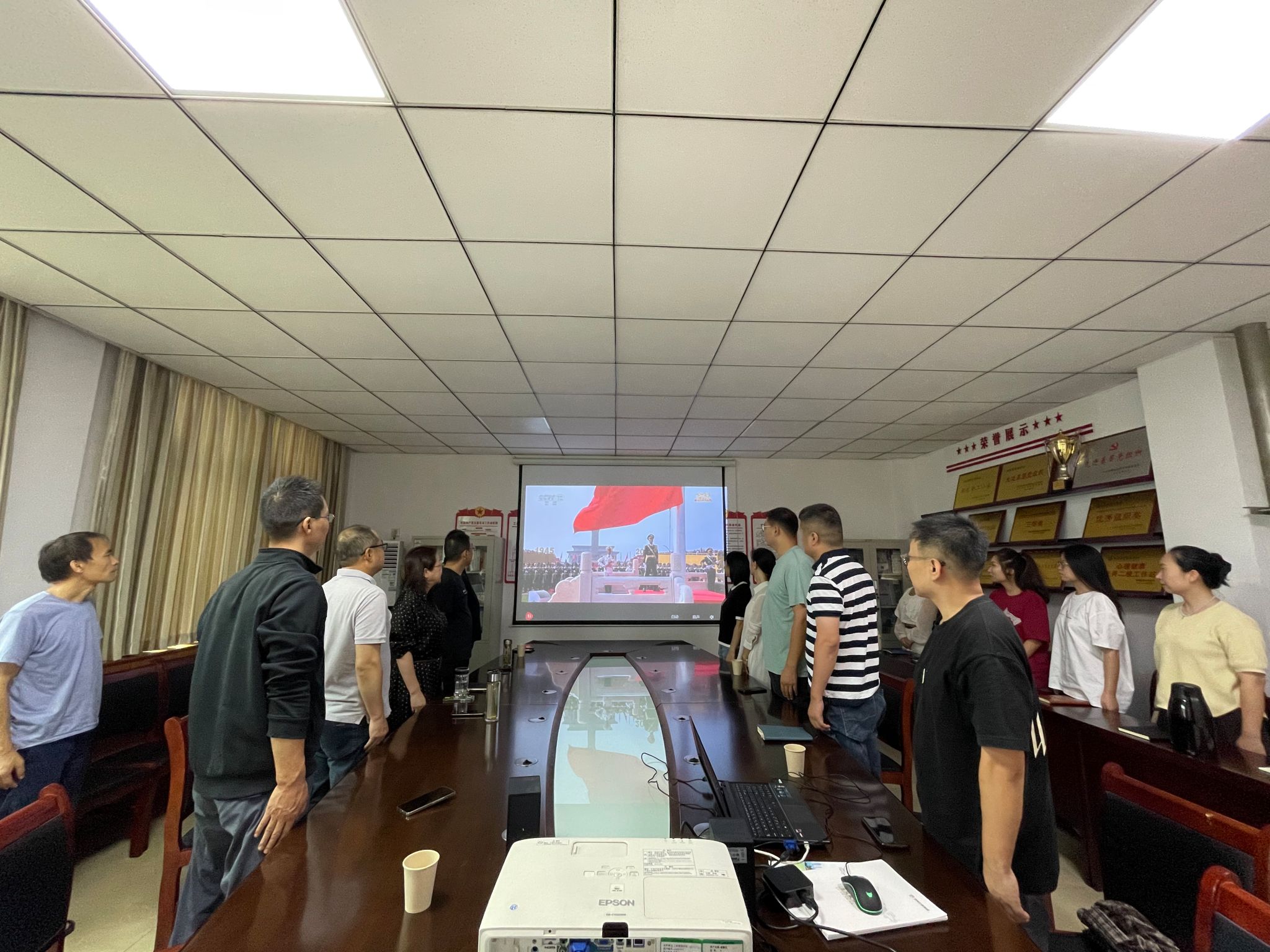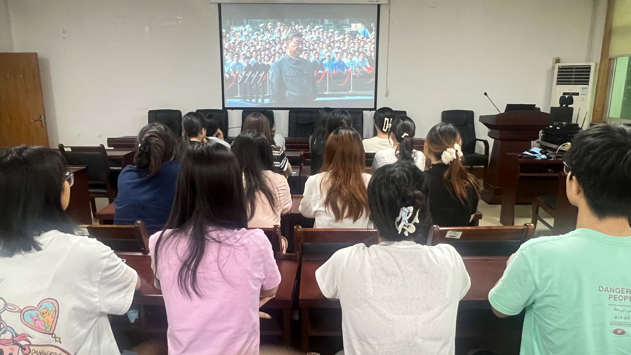 当国旗冉冉升起、礼炮鸣响时,现场师生全体起立,齐唱国歌,气氛庄严隆重。师生们全神贯注,认真聆听习近平总书记重要讲话,仔细观看阅兵仪式中徒步方队、装备方队和空中梯队的精彩展示。“观看纪念大会是一次深刻的精神洗礼。”我院党委书记王国辉在观看直播后表示,“习近平总书记的重要讲话回顾了中国人民抗日战争的峥嵘岁月,强调了伟大抗战精神的历史意义和时代价值,为我们高校师生上了一堂生动的爱国主义教育课。中国将坚定不移地走和平发展道路,“以和为贵”是中华民族血脉中的智慧基因,但“以戈止战”更蕴含了深刻的战略智慧与和平理念,我们再次用事实和行动证明,国家的强大不在于战争和征服,而在于守护和平的能力与决心!”