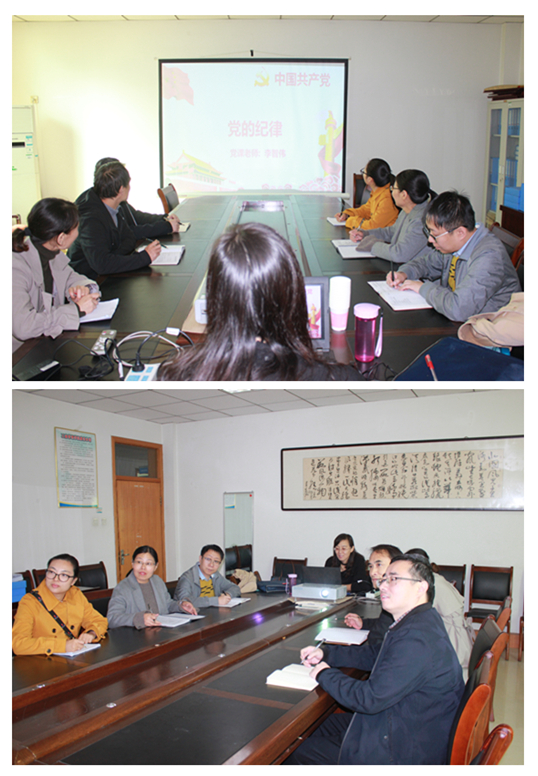 李智伟老师首先介绍了党的纪律建设的历史沿革,说明了我们取得今天的辉煌成绩,离不开加强纪律建设这个优良的政治基因。随后,她从党的先进性层面上强调了“把纪律和规矩挺在前面”的深刻意义。最后,通过学习《中国共产党廉洁自律准则》和《中国共产党纪律处分条例》,让全体支部党员了解到“确立高标准”和“守住最底线”的深刻含义,同时认识到党中央全面从严治党的坚定决心。