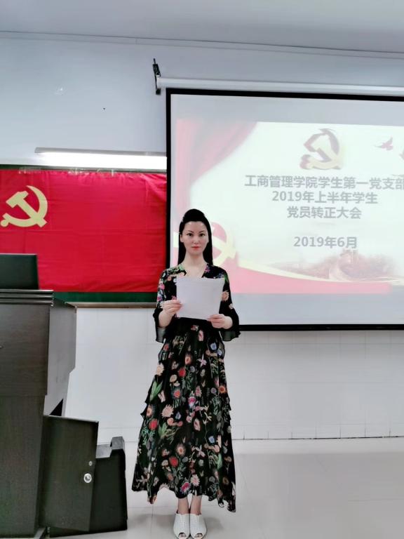 会议进行第五项:由王璐同志作为今天18名拟转正党员代表作表态发言。