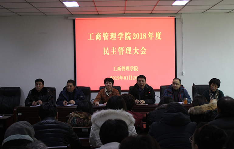 院长王桂朵代表学院做了题为《打造一流专业,重塑工商品牌》的年度工作报告,报告分为2018年的工作回顾、存在的问题、2019年的思路和打算三个部分,对我院2018年学科建设、教学科研、学生管理、人才工作、管理服务等方面工作进行了系统的总结。并从发挥党建引领作用、打造一流专业、高水平完成评估工作、大力提升科研水平、重点推进实验室建设、加强师德师风建设、狠抓学风建设等十个方面对2019年的工作进行了展望。