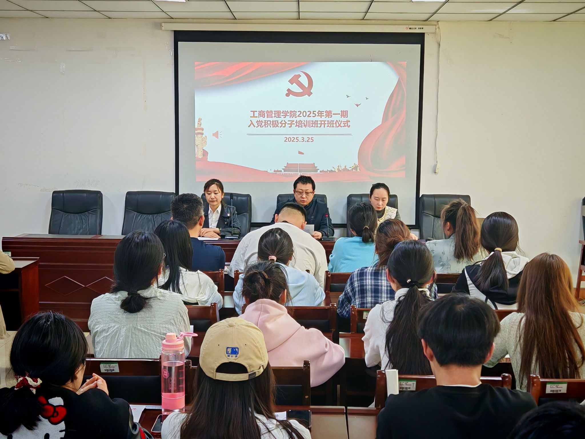 伴随着庄严的国歌,开班仪式拉开序幕。贾雪作开班动员讲话,并宣读此次培训班名单和培训计划, 随后,詹珅热烈祝贺和欢迎参训的入党积极分子并提出四点期望和要求:一是要以信仰为舵,校准青春航向。从党的创新理论中汲取智慧,把个人理想融入国家发展、民族复兴的伟业之中。二是以理论为基,筑牢思想根基。认真学习党的知识,严守纪律底线,扣好入党“第一粒扣子。”三是以实践为刃,锤炼担当本领。在生活中发挥表率作用,做弘扬正气的模范。四是以修身为本,永葆先进本色。修忠诚之德,怀感恩之心,行务实之举。