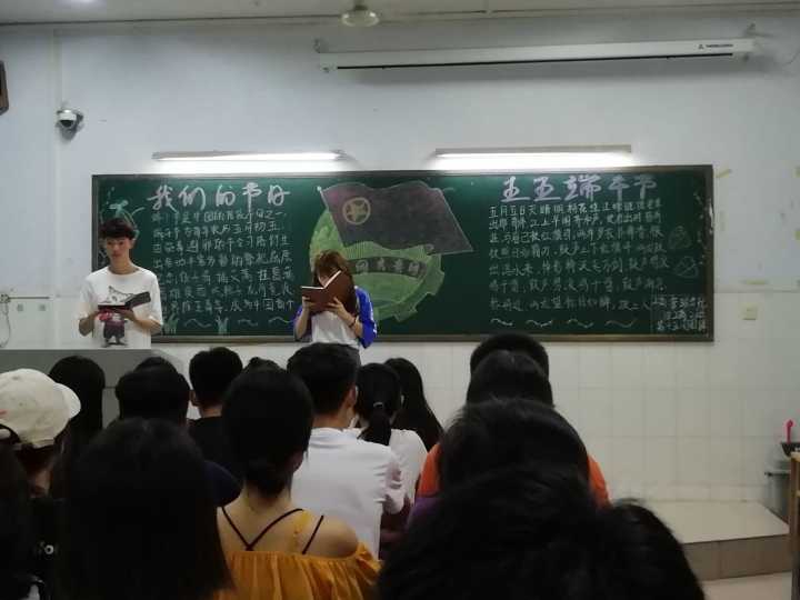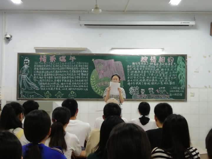 此次团课在各班团支书“在端午节即将来临之际,我提前祝大家端午节快乐!”的祝福声中拉开帷幕!首先,团支书询问同学们“关于端午节,你想到什么”的问题,同学们踊跃回答,交流自己对端午节的想法。随后,团支书分别介绍了“端午节的由来”、“端午节的内涵”、“端午节的习俗”等有关端午节的常识。这让同学们真正了解我国的传统文化,并更好的传承我国的传统文化。随后,团支书让同学们回忆自己的以往的端午节是如何度过的,并分享自己家乡的端午节。同学们纷纷发言,活跃了团课气氛。最后,团支书组织同学们讨论并策划端午节来临时我班将开展的活动。团课也在讨论结束的同时画上了圆满的句号。
