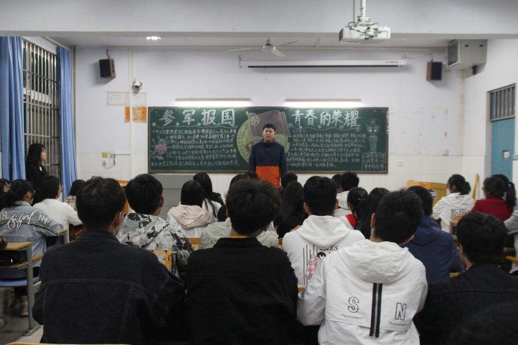 班会上,各班班长详细讲解了征兵的意义及相关优惠政策,并对征兵入伍条件、退役复学后考研、经济补助等政策进行了详细的介绍。紧接着回答了同学们提出的有关学费减免、落户要求、复学助学等相关问题,班会气氛十分和谐。