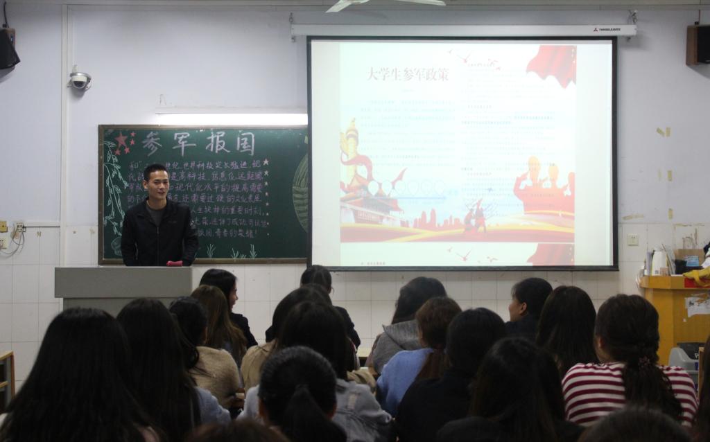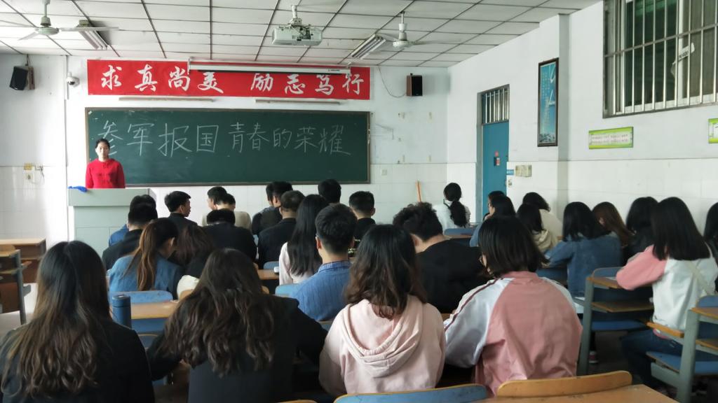 为鼓励更多有志学子积极参军入伍,保家卫国。4月28日晚,我院召开了“征兵入伍宣传”主题班会活动。17级,18级共800余人参加。