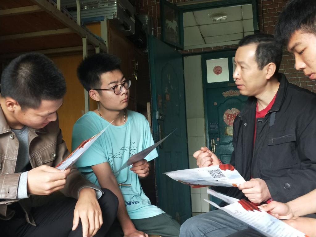 为加强我院学生国防教育,鼓励和动员我院大学生参军入伍,4月28日下午,我院学生第二党支部书记李志刚老师特带领三名退伍军人深入我院班级宿舍,现场为同学们解疑答惑。