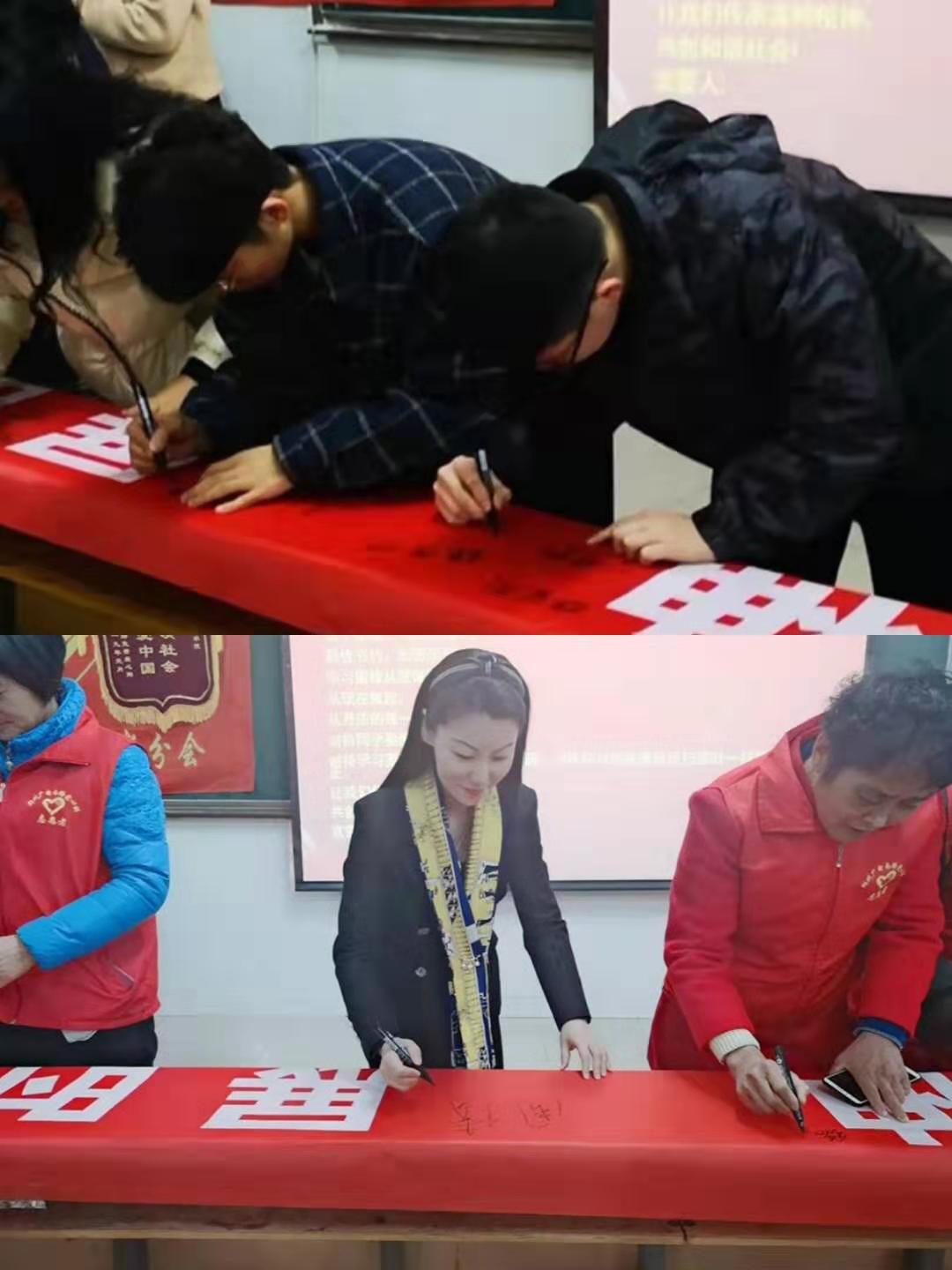 启动仪式上,我院四月天青年志愿者协会会长黄刘鑫代表全体志愿者发言,号召我院学生积极投身到学雷锋志愿服务月系列活动中去;社实部部长李聚钢带领现场全体志愿者宣读学雷锋誓词;最后,参加仪式的领导老师和全体青年志愿者们依次在学雷锋志愿活动宣传条幅上签名并合影留念。