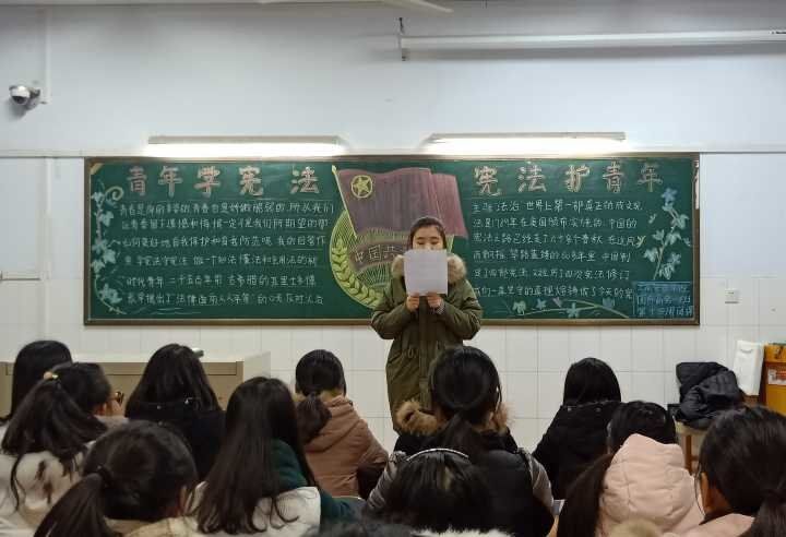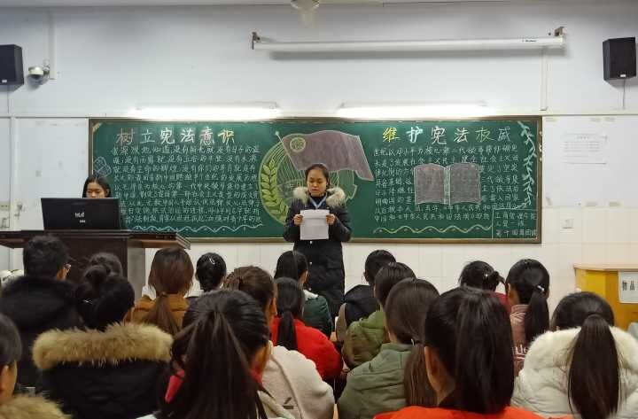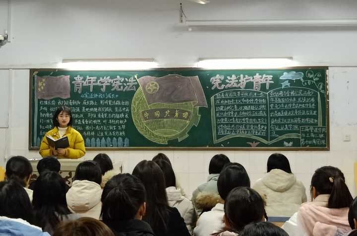 团课上,各班团支书讲解了宪法日设立的背景、宪法日设立的内容、意义,带领同学们进一步了解了宪法的基本概况以及在国家政治、经济、文化、社会生活中的重要意义。其间,各班结合大型法制专题片《法治中国》中的视频片段,让同学们更清楚的了解我国的法制进程,特别是十八大以来我国法制领域所取得的重大成就。同时,各班还进行了宪法知识竞答活动,大家互动交流,畅谈感想,现场气氛热烈。