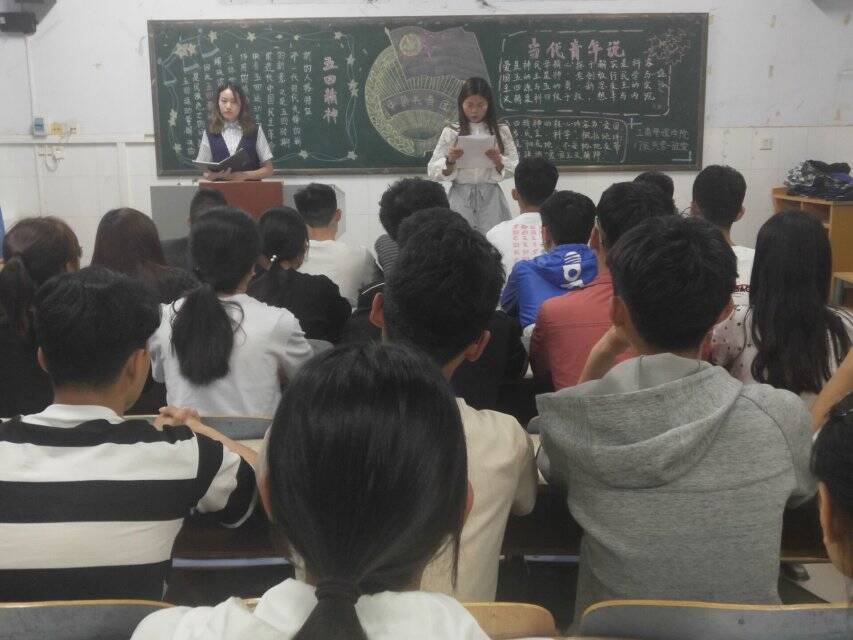 时值五四青年节到来之际,为了传承五四精神,激发爱国热情,贯彻习近平新时代中国特色社会主义思想和党的十九大精神。我院于5月3日在B楼特举办“新时代新青年——弘扬五四精神”主题团课。参加本次团课的有17级国际商商务一班、17级国际商务二班、17级连锁经营管理一班、17级连锁经营管理二班、17级工商管理一班、17级人力资源管理一班共300余人。