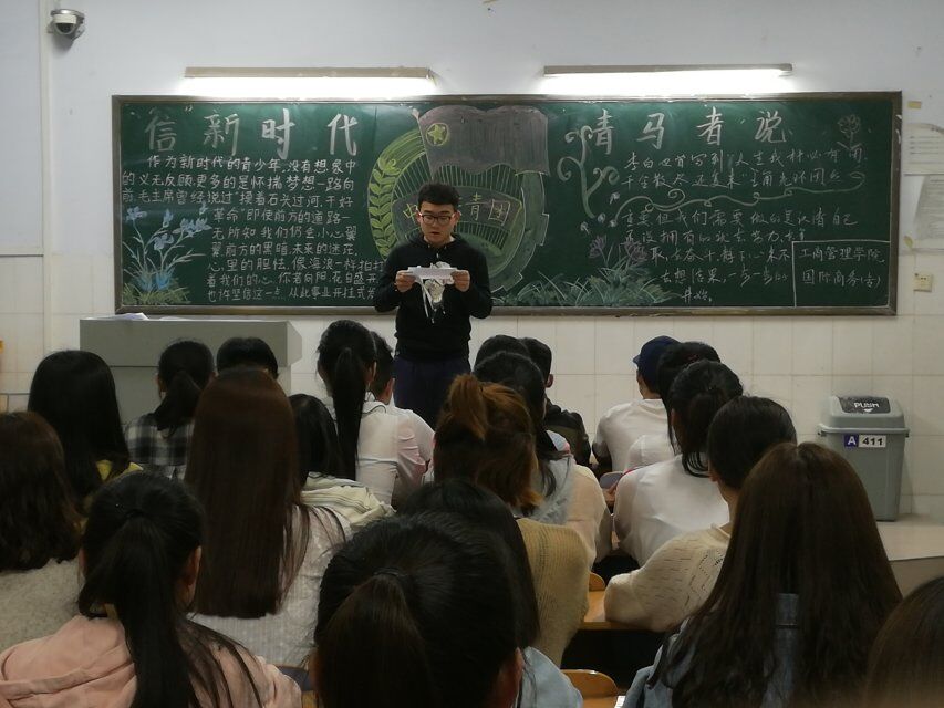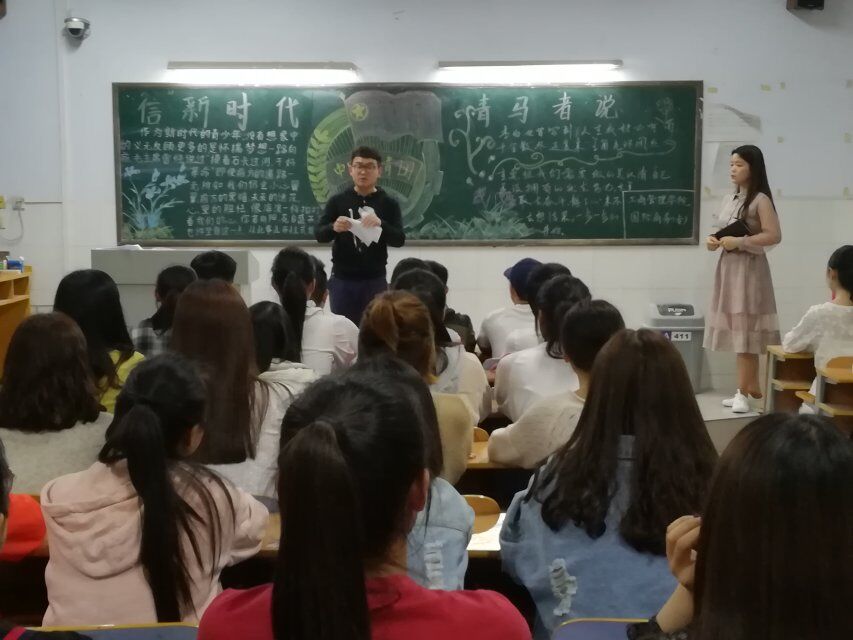 为了纪念无产阶级伟大导师马克思诞辰,深入学习宣传、贯彻习近平新时代中国特色社会主义思想和党的十九大精神,切实加强对青年的思想引领,努力培养担当民族复兴大任的时代新人,扎实推动“青年马克思主义者培养工程”的深入实施,我院于4月19日在教学楼A楼举办了“信·新时代青马者说”主题团课,共有17级市场营销一班、17级市场营销二班、17级医药营销一班、17级汽车营销与服务一班、17级汽车营销与服务二班、17级国商专班六个班级三百余人参加此次团课。