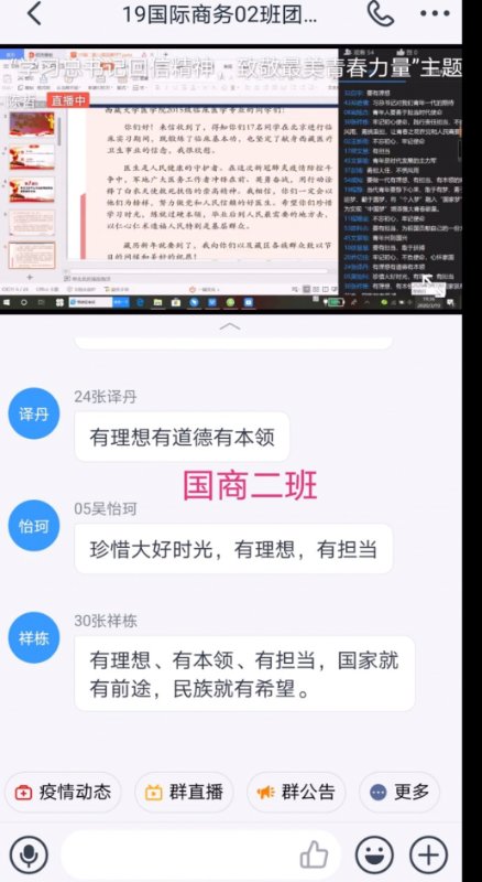 为认真学习贯彻习近平总书记回信重要精神,进一步激励团员青年坚定理想信念,培养家国情怀,我院于3月19日晚开展了“学习习近平总书记回信精神,致敬最美青春力量”线上主题团课。参加此次团课的有我院19级400余名学生。