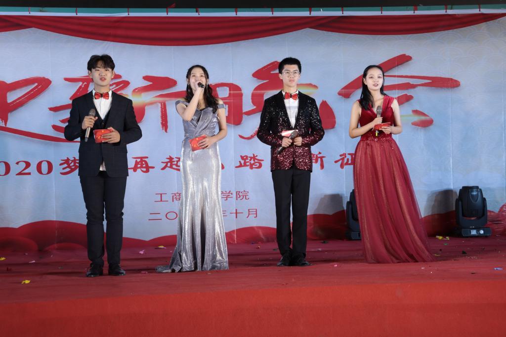 晚会开始, 大合唱《少年中国说》,铿锵有力的歌声和句句震撼的歌词,时刻警醒我们工商学子充满力量勇敢向前;节奏清晰、活泼动感的健美操《舞动青春》让青春的你轻舞飞扬;歌曲《卫星satelite》浑厚的歌声穿破云霄,绕梁三日,让人久久难忘;民族古典舞《思美人兮》,翩若游龙,婉若惊鸿,向观众展示了中国传统古典舞的艺术魅力。随后的小品《等你回家》让父母之爱流畅于每个人心田,将现场气氛推向了第一个高潮,礼仪队的模特表演,点燃了全场的气氛,淋漓尽致地演绎了青春与时尚的交融、个性与活力的碰撞;原创男声二重唱《宝贝想听你说》婉转悠长,蕴含着美丽校园的浪漫与风景;院爵士舞蹈队带来的节奏清晰、活泼动感的体育舞蹈《Kiss this love》,彰显了工商学子昂扬向上的精神面貌和朝气蓬勃的青春活力。《看月亮爬上来》《这就是爱》《mojito》歌曲串烧,无不传递着温暖人心的力量;现代舞《Gashina》演绎者那飒爽的舞姿,灵动的跳跃,让人过目难忘。