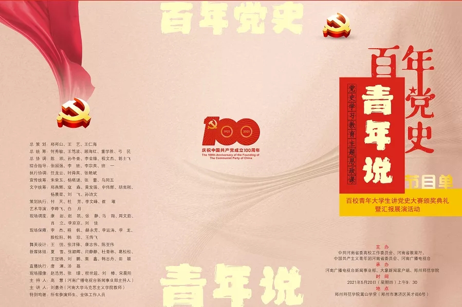 根据《中共河南省委高校工委办公室河南省教育厅办公室关于举办“百年党史青年说”——百校青年大学生讲党史大赛汇报展演暨颁奖典礼的通知》(豫高办〔2021〕12号)要求和和我院党史学习教育安排,5月20日上午WilliamHill中文党委组织学生2100多人通过在线观看的形式,参与了“百年党史青年说”——党史学习教育主题思政课直播活动。