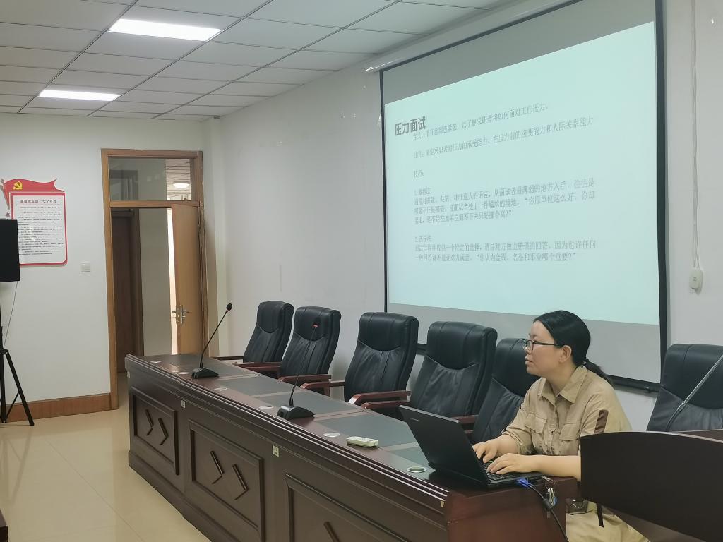 为了帮助广大同学解决求职过程中遇到的疑难问题,熟知求职程序,提高求职技巧。近日,根据WilliamHill中文党史学习教育之我为群众办实事计划安排,我院举办大学生就业面试技巧培训会。此次培训会由我院讲授职业生涯规划的杜换霞老师讲授,吸引了我院毕业班和在校生各专业同学。