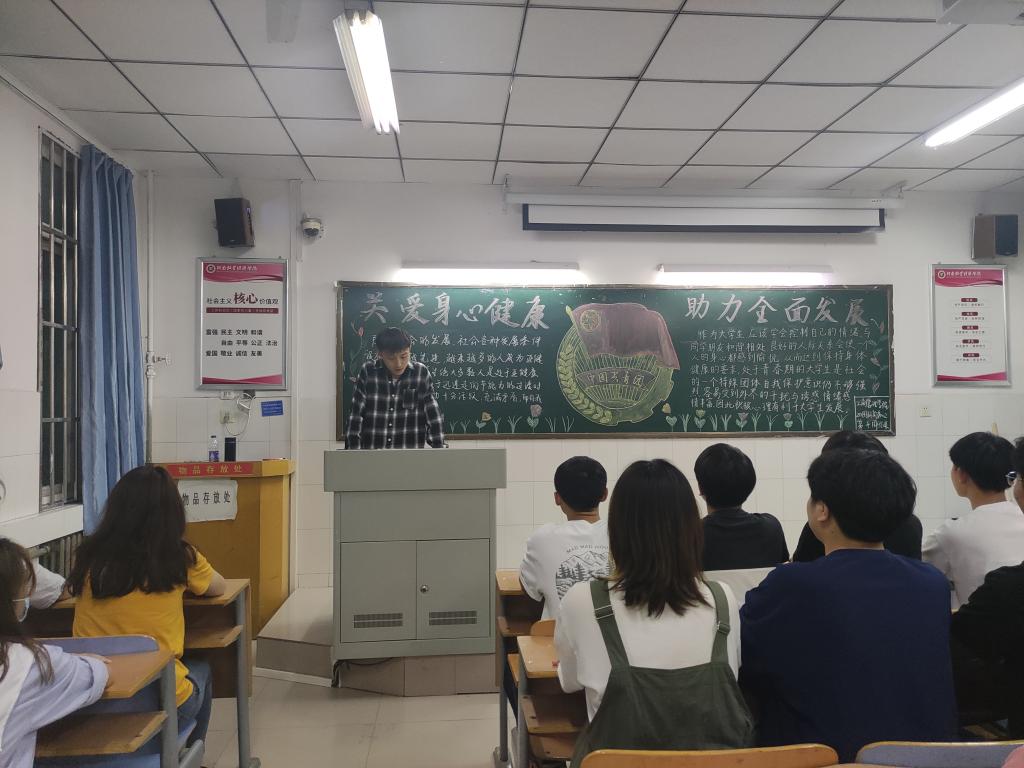 团课伊始,各班团支书向大家讲述了“5·25”心理健康日的由来,同学们了解到“5·25”的谐音即为“我爱我”,意在提醒广大学生“珍惜生命,关爱自己”,其中“认识自我,接纳自我”的核心内容给大家留下了深刻印象。紧接着,团支书列举了部分大学生因心理问题而引发的意外事件,让大家认识到关注心理健康对一个人的全面发展具有十分重要的意义。之后,各班以“怎样用健康的身心促进全面发展”为话题展开热烈讨论,团课氛围严肃而不失活泼。最后,由各班小组代表上台发言。代表们强调我们应时常关注自己的心理健康,体验自己存在的价值,用信任、友爱、宽容、尊重的态度与人相处,主动分享、接受、给予爱和友谊,以澎湃的热情积极参与到各项校园文化活动中,在参与实践中炼就本领,收获成长。