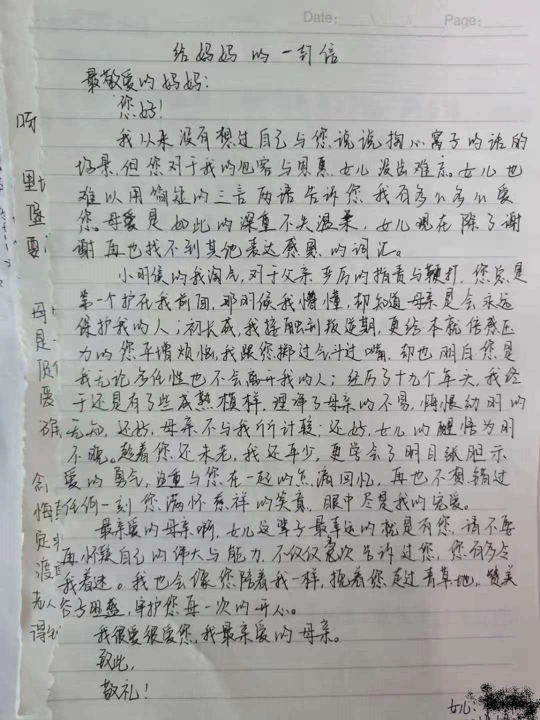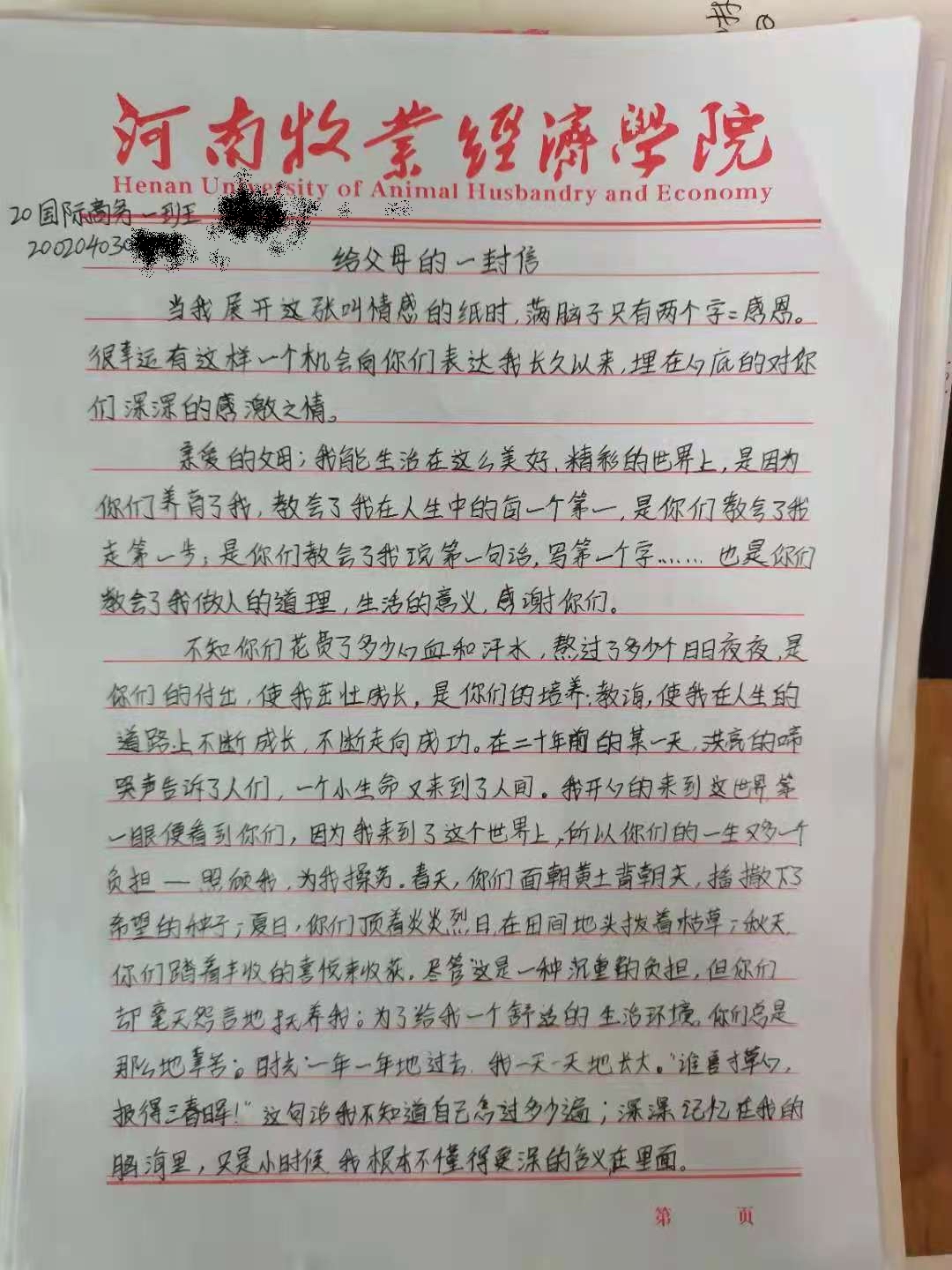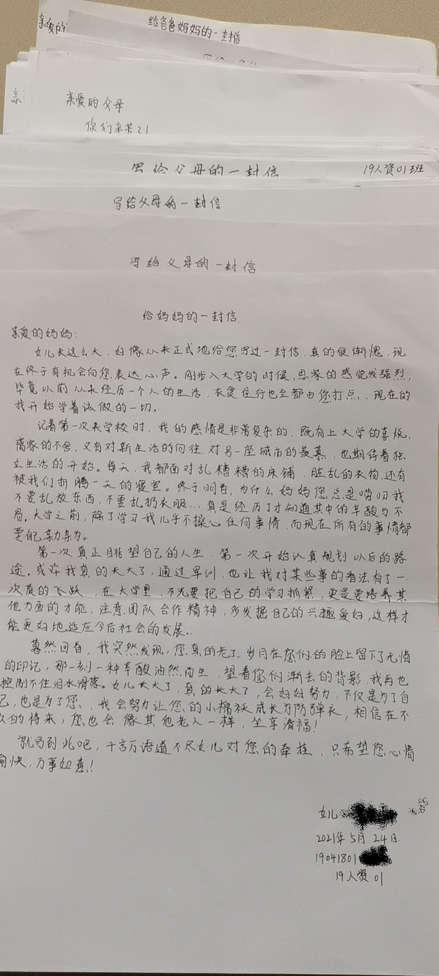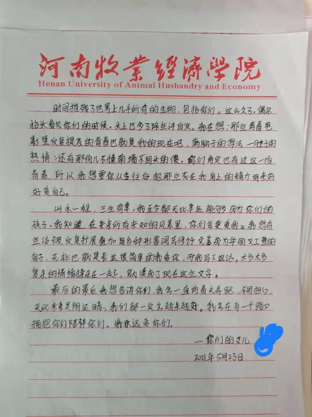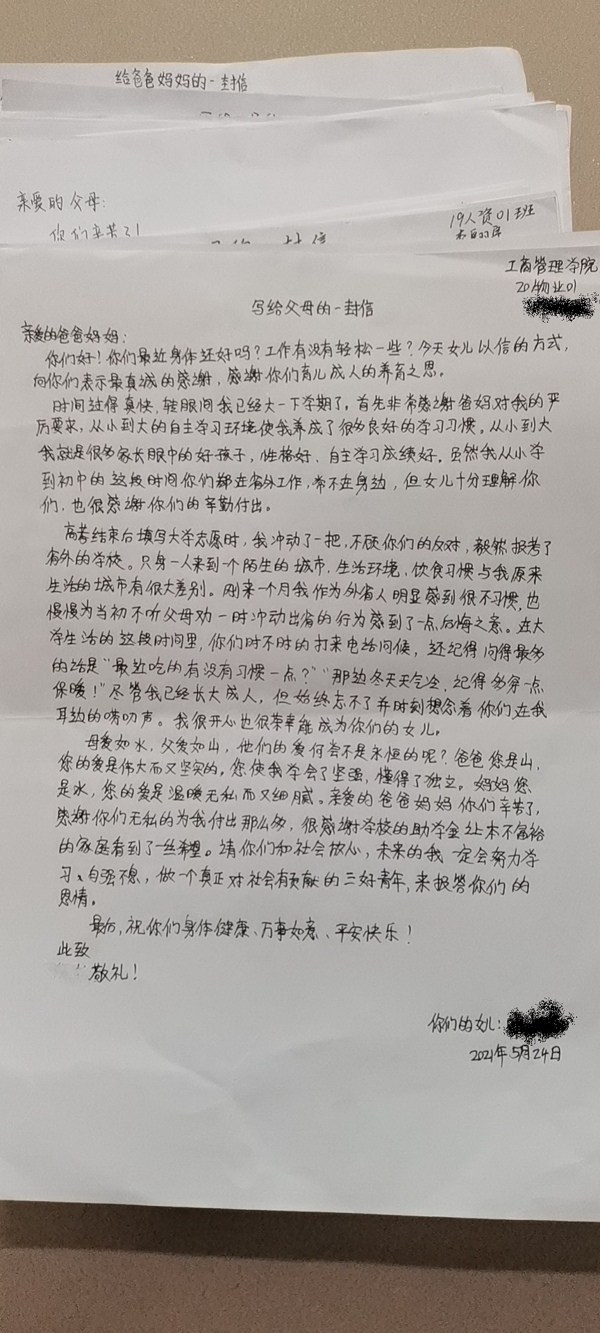 为了更好地对大学生进行感恩教育,让我院学生有感恩之心,尤其是对受到国家贫困资助的学生的感恩教育,在我院2021年5-6月心理健康教育月之际,我院在全院受国家资助的学生中发起感恩教育—“致父母的一封信”活动,让受资助的学生从感恩父母的辛劳开始,感恩祖国的资助,感恩老师的指导,感恩朋友的支持,感恩世界的美好,重塑健康心灵,用拼搏上进的心态,去努力学习,报效祖国。