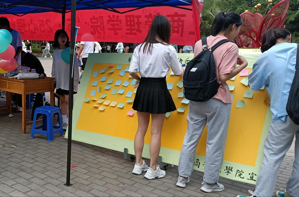 同学们在展板上贴下心愿便利贴