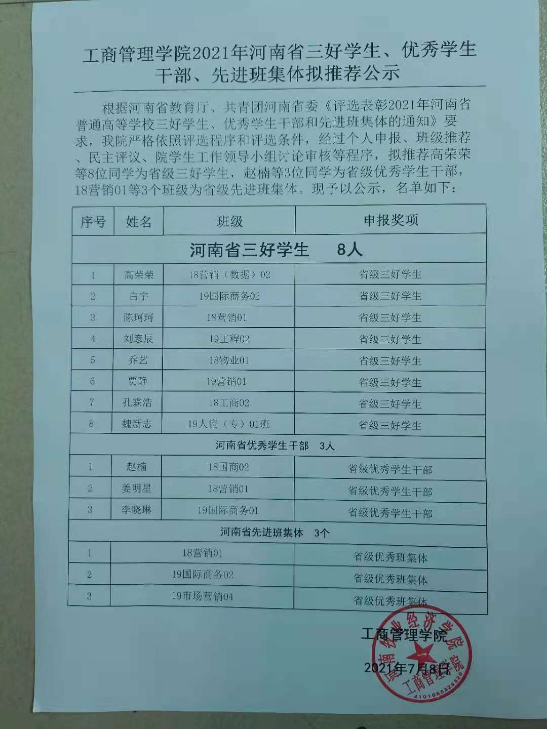 现对以上拟推荐的个人和集体进行公示,公示期为三天,公示期为7月8日-7月10日,公示期内如对推荐的个人或集体有问题反映,请及时向WilliamHill中文学生工作领导小组反映。