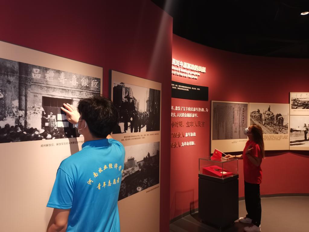 在讲解员的带领下我们党员四人进入馆内参观,展厅分为千里跃进、逐鹿中原;运筹帷幄、问鼎中原;薪火相传、光耀中原;中原首府、魅力宝丰四部分,党员同志们认真听讲,仔细观看,不时对展示的历史人物、重要战役、保存物品相互交流感悟体会。