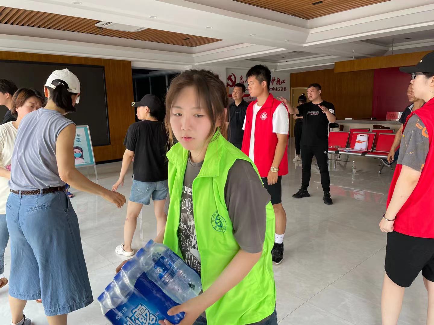 由于雨势过大,全市多处电箱、电线、水厂被淹,导致许多小区停水停电,无法得到供水供电,生活基本保障出现了问题,为此社会各界人士捐赠了大量矿泉水以及方便面等物资,送到街道办事处以及各个社区统一发放。在此期间,我校赵艺琳同学承担起了物资搬运、清点的工作,在物资到来的时候帮忙卸货,在物资发放的时候帮忙装车,与其他志愿者同志团结一致、齐心协力,共同完成了这项工作。在一些高层居民楼小区,由于积水较多,难以及时排出,导致电机受损,出现了连续多天停电停水的情况,一些居住楼层较高的住户,特别是年龄较大、活动不便的独居老人,难以独自上下楼购置食物以及生活用水,基本生活难以保障。赵艺琳同学同其他志愿者同志共同承担起物资配送与慰问工作,将食物和水送上了十几层的独居老人家中,并且亲切问候老人的生活情况,为老人送去温暖与关怀。