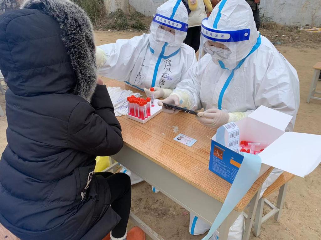 1月3日,她正式上岗后,就积极参加村内组织的核酸检测,组织村民有序的进行核酸检测,并帮助医护人员进行核酸检测的信息登录,由于村内人员较多且有老人行动不便,我们穿着防护服要很长时间并且还要上门为那些行动不便的老人进行核酸检测。她用自己的汗水为疫情防控早日有效控制做出了一名大学生应有的贡献。