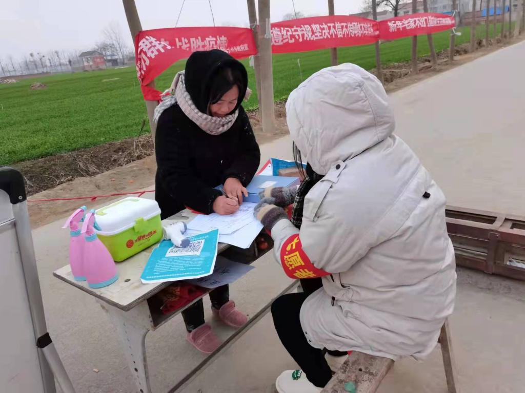 放假回家之后临近年关返乡人员较多,最容易疫情复发。2022年1月2日21营销01张继方同学得知村支部在招募志愿者后便主动申请加入疫情防控服务行列,为返乡人员做登记、宣传防控知识、为外省返乡人员贴封条。