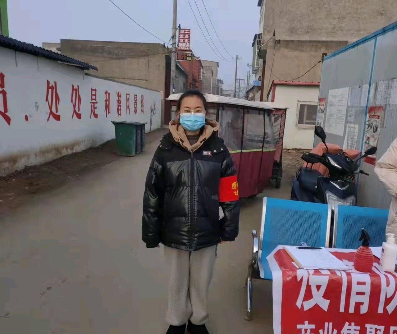 宋晓冉同学在开封市杞县城郊乡七里岗村进行了多种疫情防控志愿服务活动。在志愿活动中宋晓冉同学积极参与该村疫情防控工作主动配合。1月11日起宋晓冉同学早起,在村口以及附近防疫站点当志愿者,维护秩序监督居民带好口罩,做好扫码登记,体温检测,做好防疫宣传。同时,她还参加村支部“汴易检”活动,为接下来的核酸检测做准备,上门为每家每户做好宣传与指导,在村里统计居民信息与返乡人员信息。