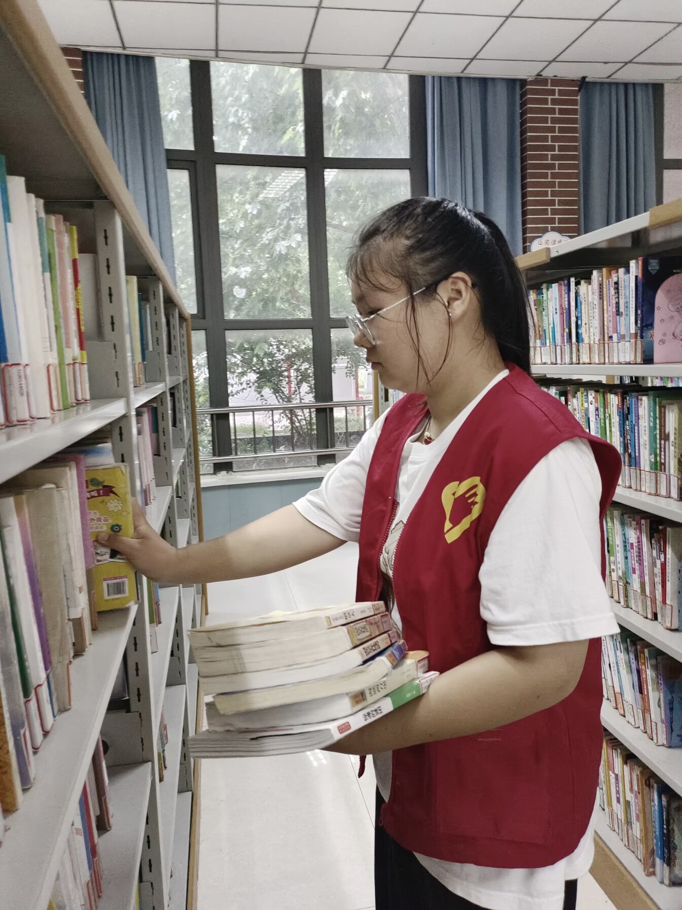 志愿服务期间,张亚茹负责协助图书管理员进行图书的查找、借阅、整理、归还以及图书馆的卫生打扫等工作。从了解图书陈列布局到实际整理书架,再到如何当好文明劝导员,在图书馆工作人员详细专业的培训后,张亚茹很快就熟悉了自己的工作,并积极参与图书馆志愿服务。她认真整理图书种类,将图书按类区分、有序摆放、规范指引,以干净、整洁、有序的环境带给图书馆读者良好的阅读学习体验。同时,她也会耐心解答读者关于图书馆书籍的各类问题,用实际行动传承和弘扬志愿者精神。