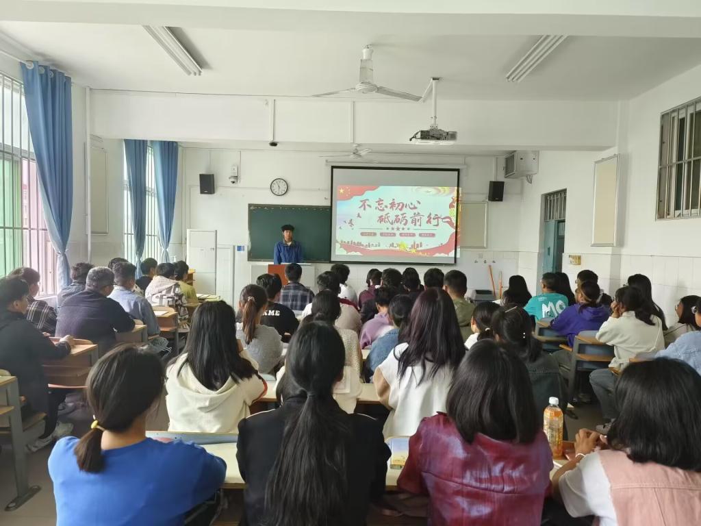 23工程01班陈博同学以黄文秀同志不忘初心、一心为民、因公牺牲的感人事迹引出主题“不忘初心、牢记使命”,陈博同学表示当代青年当牢记鲁迅先生的话“能做事都做事,能发声都发声,有一分热,发一分光”,不负党的期望、人民的期待、民族的重托,敢于担当,在担当中历练,在尽责中成长。