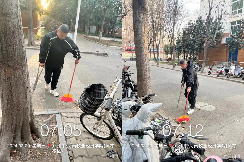 3月7日,学院于227会议室召开2024新学期劳动周动员大会,院团学会主席团,23级全体班长,生活委员参加本次会议。团学会主席时银达向同学们阐述了新时代劳动教育的重要意义并明确了劳动区域及纪律要求。劳动周期间由各班生心委员安排各小组成员的任务分工与卫生区划分,并传达校部讲解强调的打扫重点。同学们利用劳动工具对路面与人行道的落叶和垃圾进行清扫。充分发扬不怕脏、不怕苦、不怕累的精神,不放过一片落叶,不错过一件垃圾。