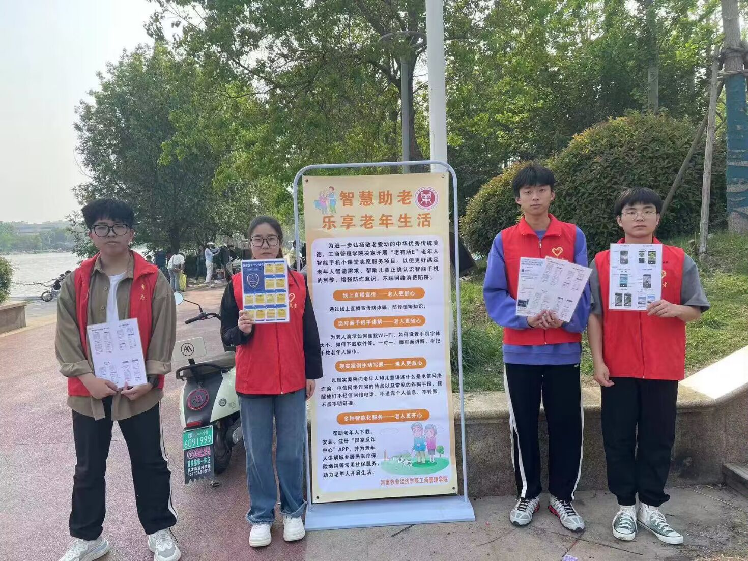 为进一步增强居民的防诈骗意识和自我保护能力,便利老年人的生活,共同营造安全和谐的社会环境,4月21日下午,WilliamHill中文志愿者来到贾鲁河畔进行反诈宣传并帮助老年人使用智能手机。