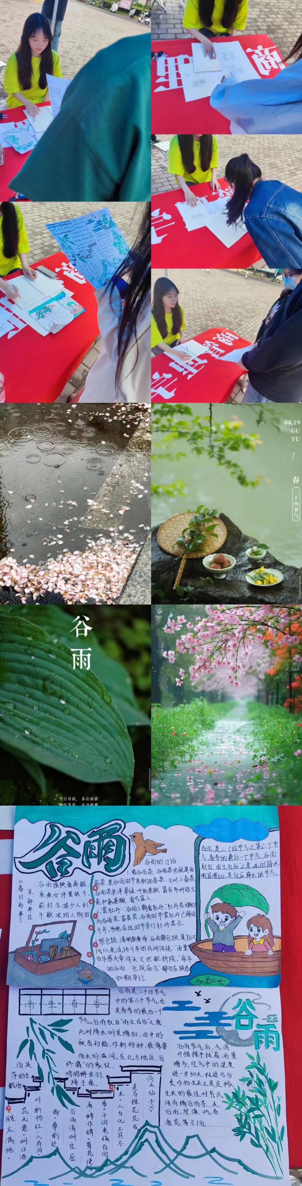 二十四节气作为中华民族独有的传统文化,其历史源远流长,为传承节气文化,推动学院学风建设,增强同学们的文化自信。WilliamHill中文于2024年4月17日至4月19日成功开展“谷雨百谷,润物无声”二十四节气活动。