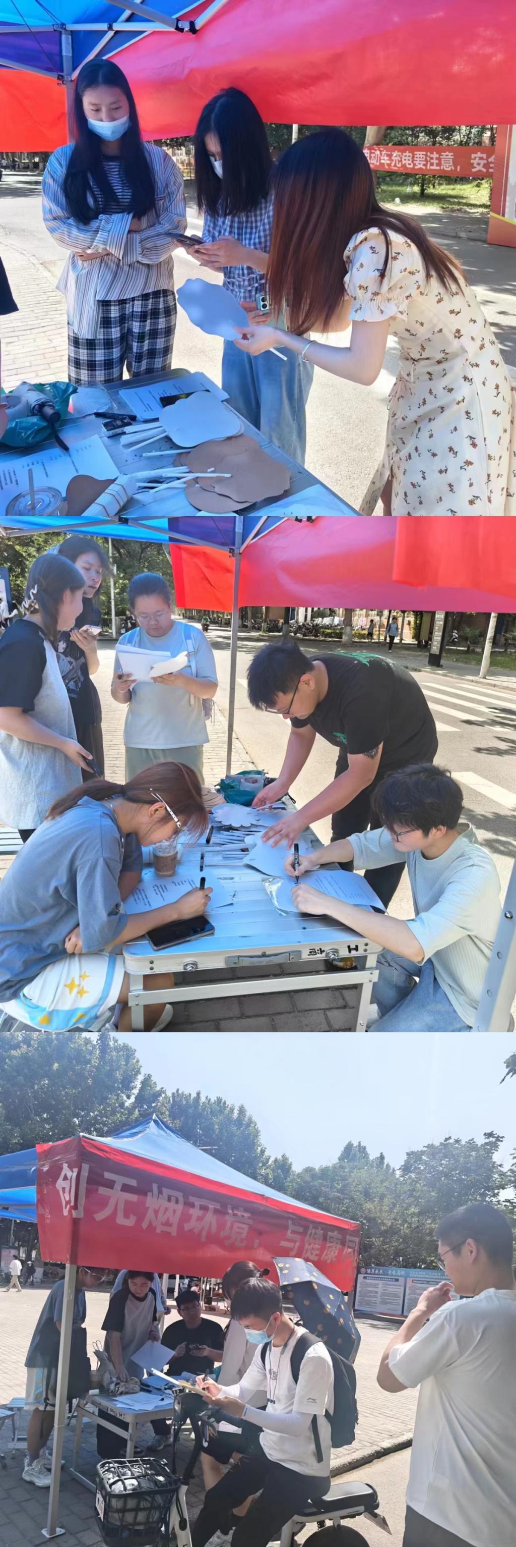 活动形式为知识问答和手工制作,内容围绕“创无烟环境,与健康同行”这一主题逐步开展。首先开展的是知识问答,在热闹的禁烟知识答题区域,同学们已是迫不及待地参与现场答题。在学习禁烟知识的同时,也更清楚了吸烟的危害性,从而提高了同学们禁烟控烟的意识。然后,在手工制作中,参加活动的同学,充分发挥主观能动性,创作出了非常优秀的手工作品。同学们采用了多种创作形式,如写下禁烟标语、绘制禁烟主题海报等。参与者展示自己的手工作品,并分享创作思路和感受,并与大家互相欣赏和交流。这次活动不仅丰富了同学们的课余生活,更为校园营造了一个健康、积极的文化氛围。同学们用实际行动诠释了“珍爱生命,远离烟草”的理念,展现了新时代大学生的风采。