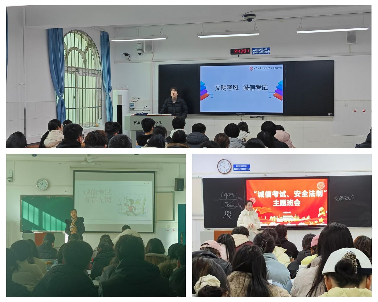 班会上,各辅导员、班主任围绕诚信考试、遵守校规校纪、守底线、讲原则等主题,不仅强调诚信考试的重要性,更是结合《学生手册》详细讲解了考试作弊的危害及后果,引导广大学生调整心态,适应考试周的生活节奏与时间安排,树立底线意识,营造良好班风、学风与考风。