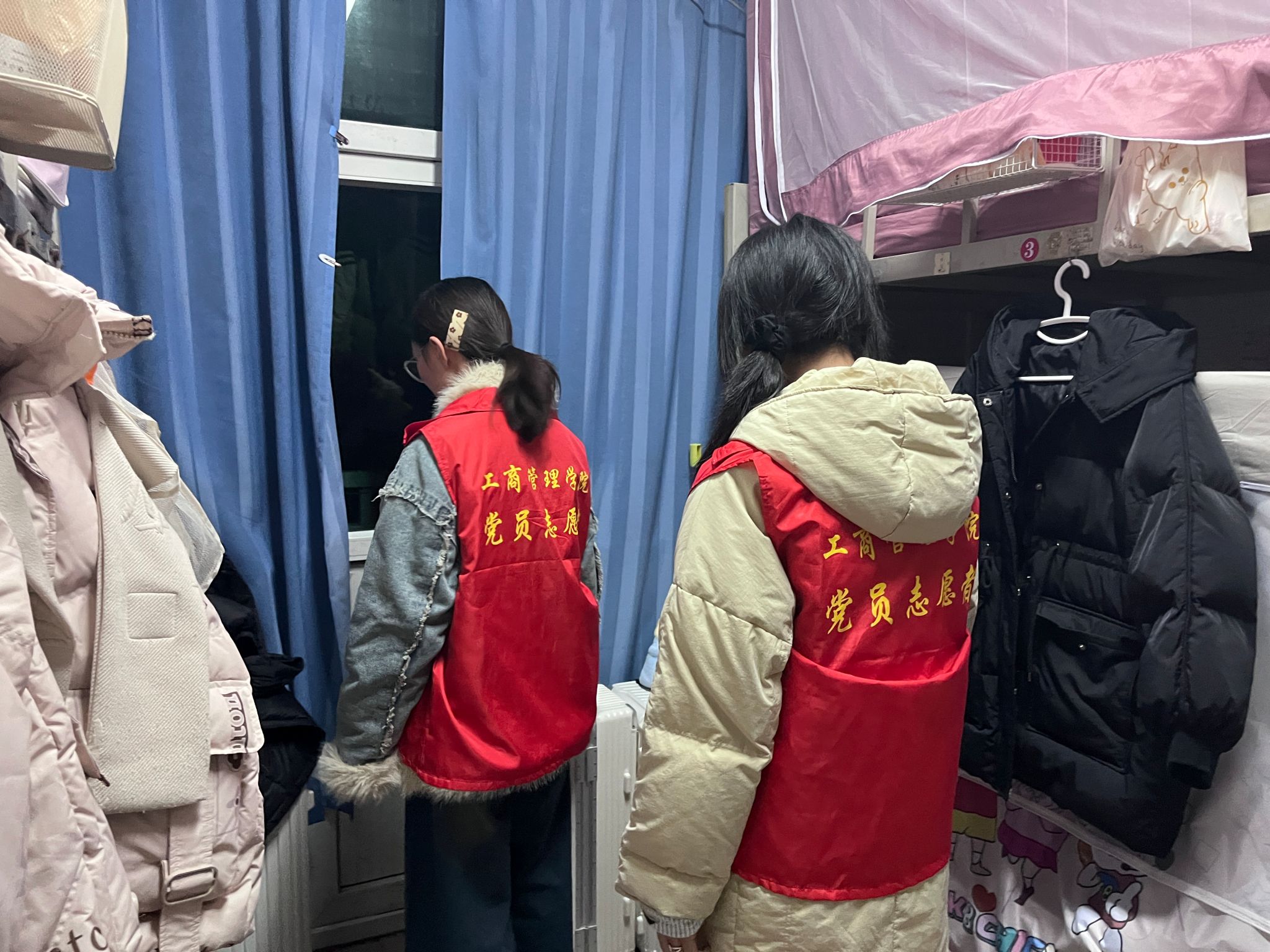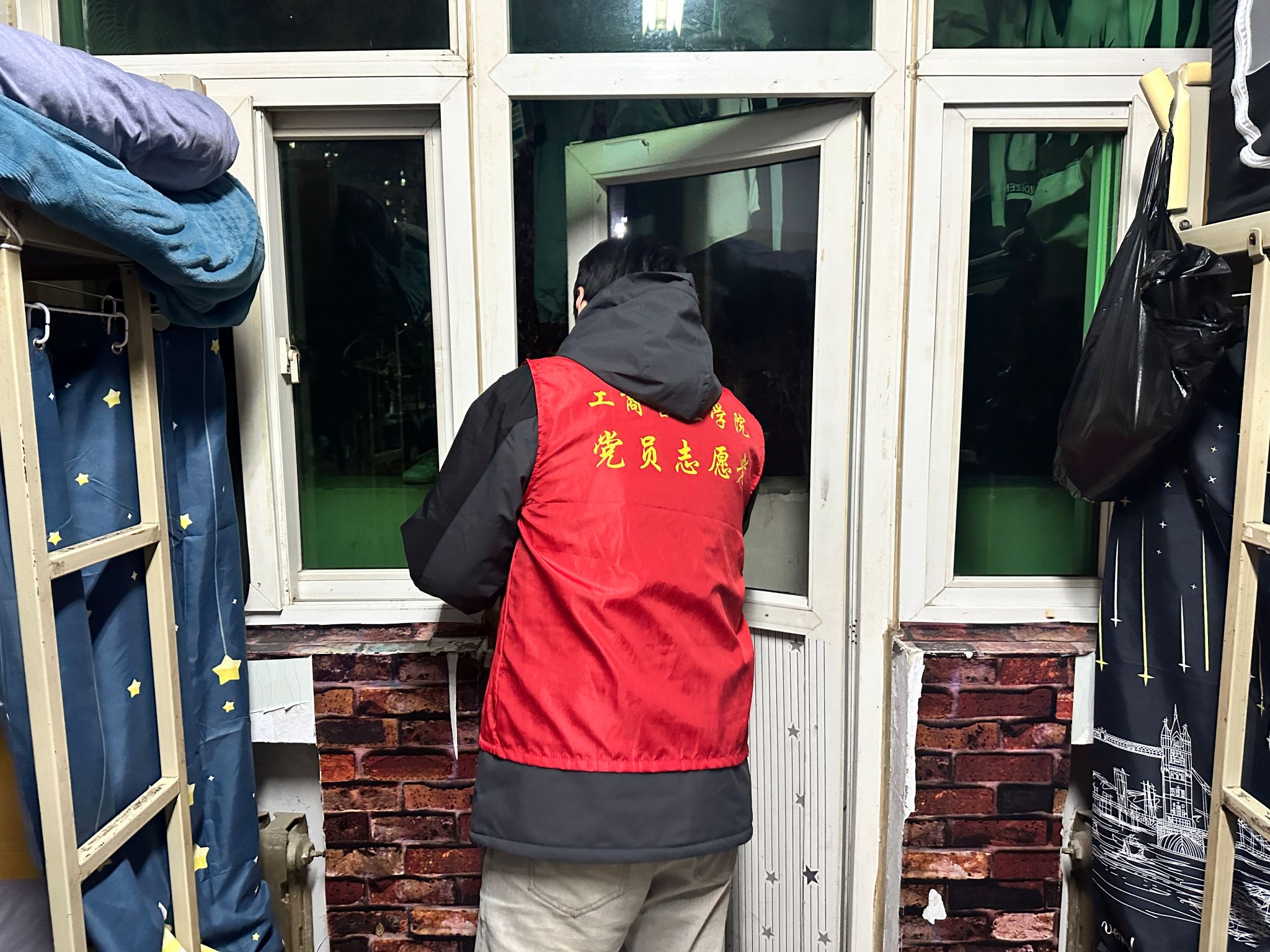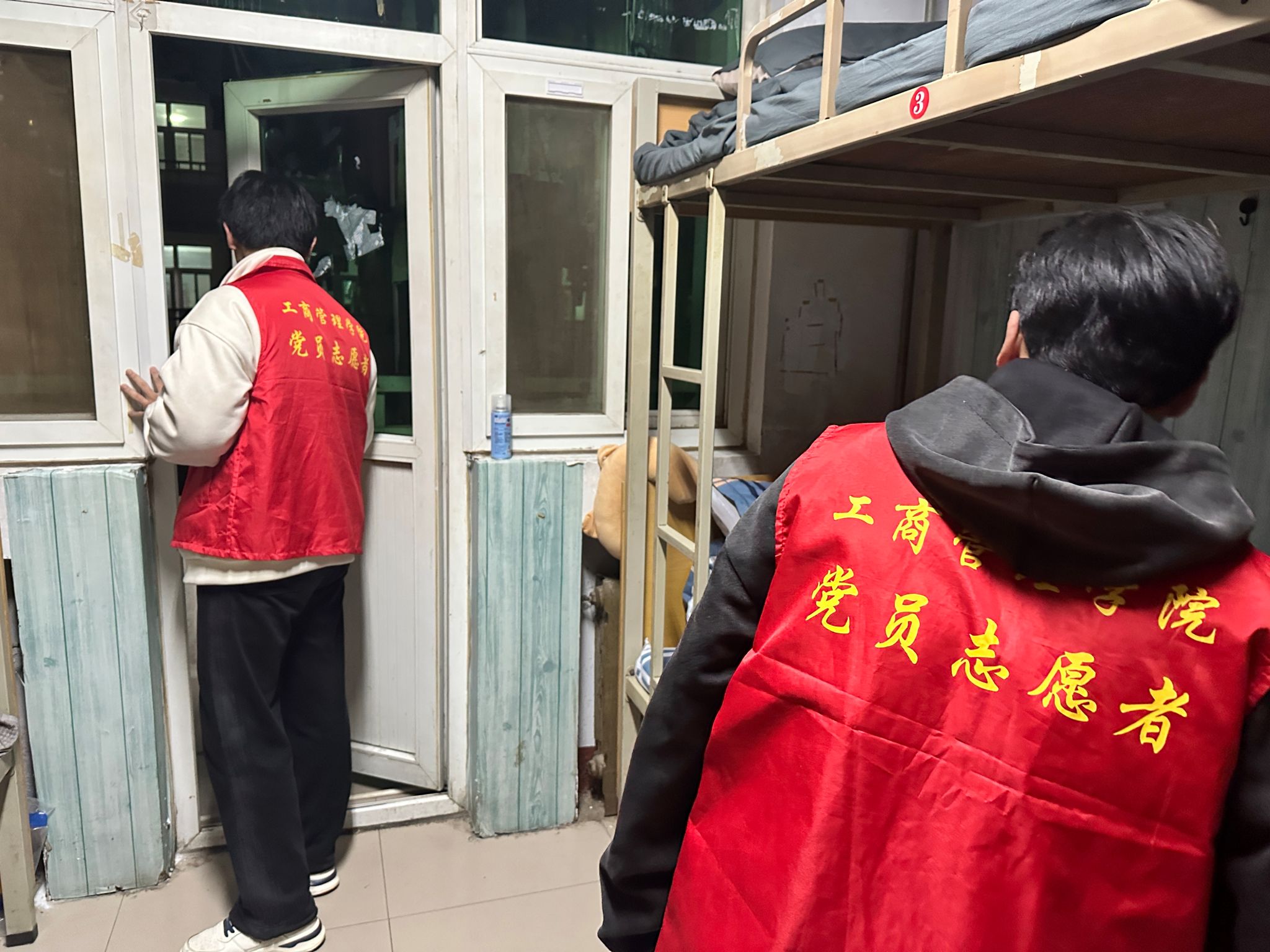党员们分成小组严格按照要求执行巡查任务。在巡查过程中,党员们细致入微地对每间宿舍进行查看。重点检查是否存在夜不归宿情况,认真核对宿舍人员信息,确保每位同学都按时归宿。同时,留意宿舍内是否有饮酒等不良行为,杜绝违规饮酒现象的发生,仔细查看桌面电源插座、角落物品堆放等区域可能存在的安全隐患。对于走廊等公共区域,也加强了巡查力度,倾听是否存有大喊大叫等影响他人休息的噪声,维护宿舍环境的安静与和谐。在整个巡查活动中,党员们充分展现了先锋模范作用,积极主动地履行好各项职责,以实际行动为同学们营造一个安全、有序、文明的宿舍氛围。